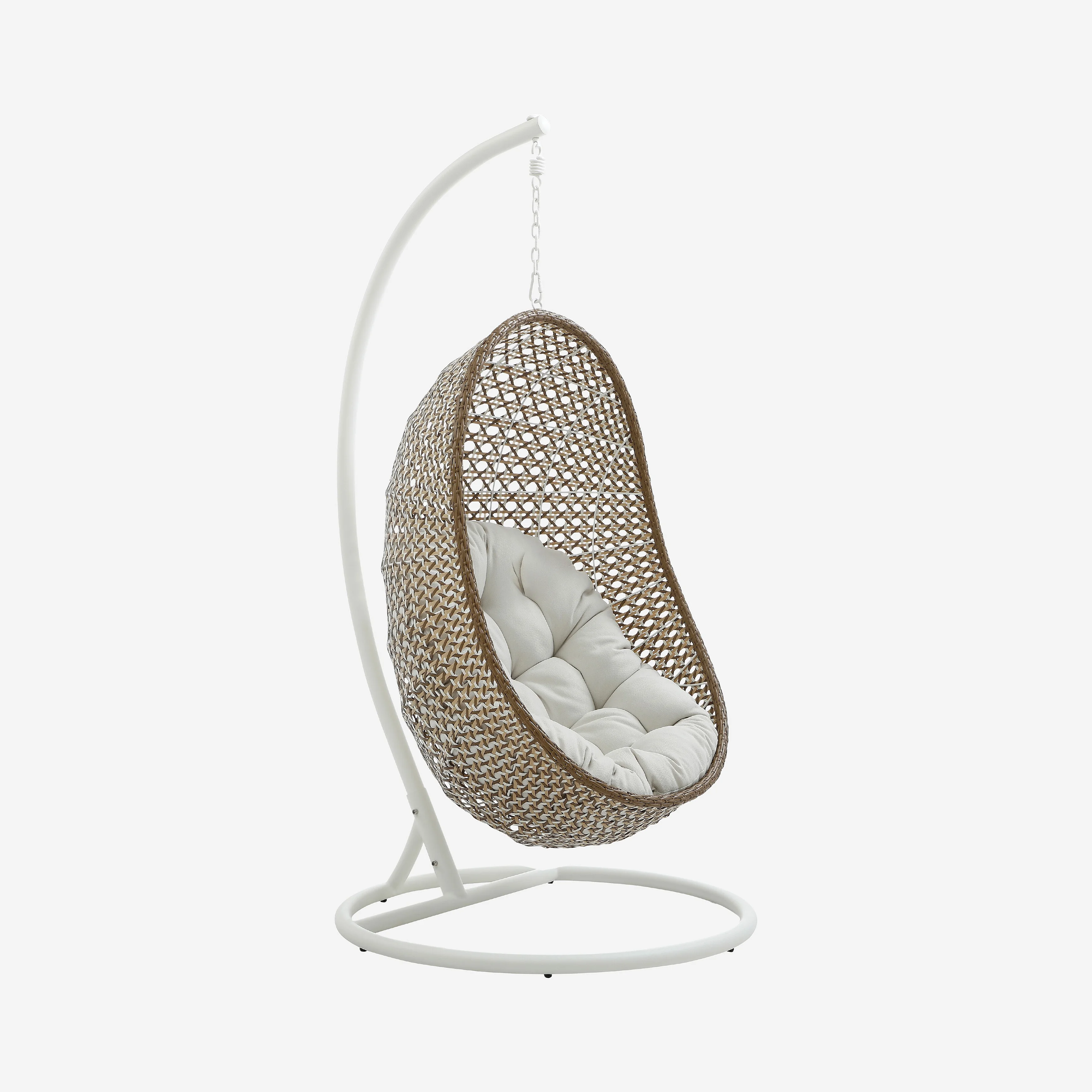 Fauteuil suspendu pour extérieur en résine tressée - Moka et blanc