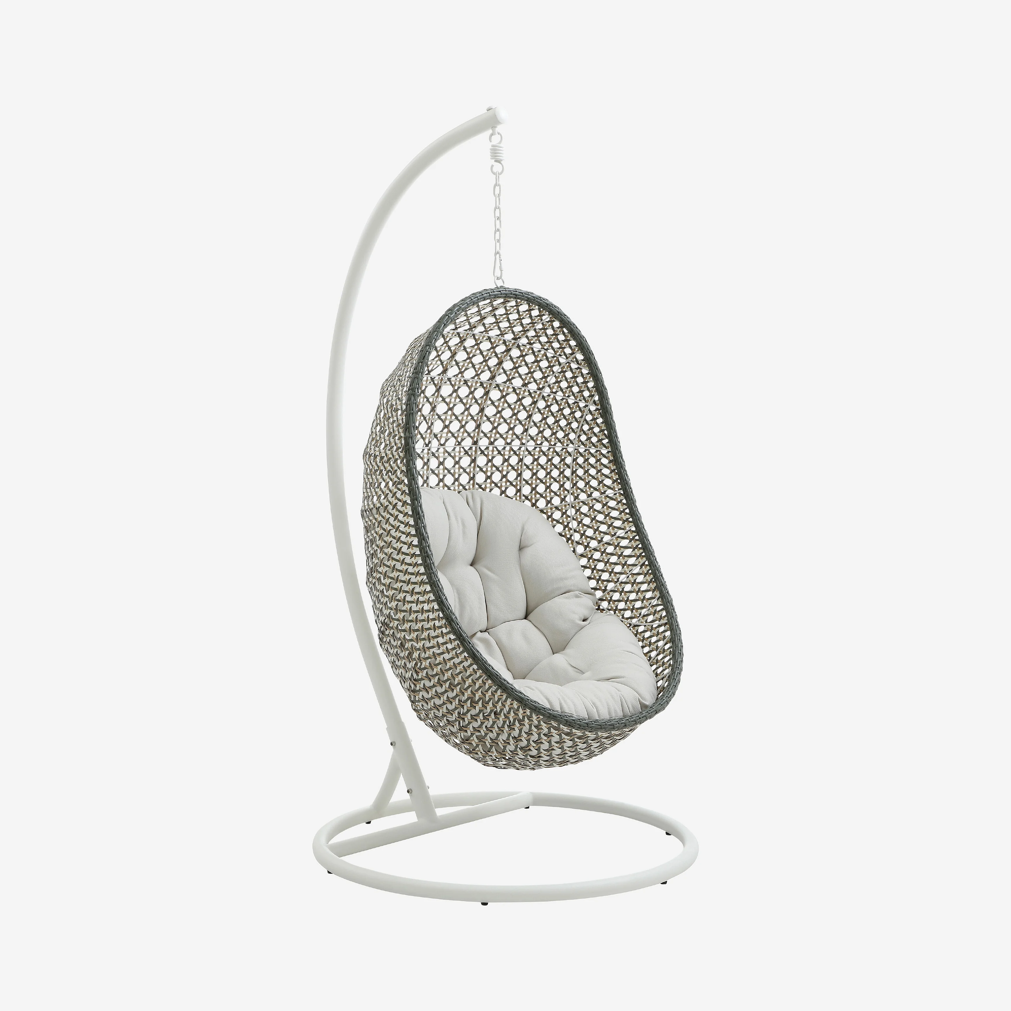 Fauteuil suspendu pour extérieur en résine tressée - Vert kaki et blanc