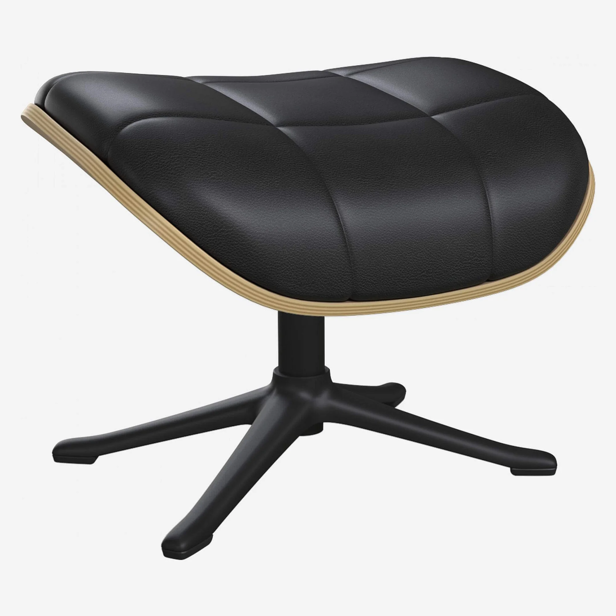 Repose-pieds en chêne et cuir Savoy - Noir obsidienne - Pied noir
