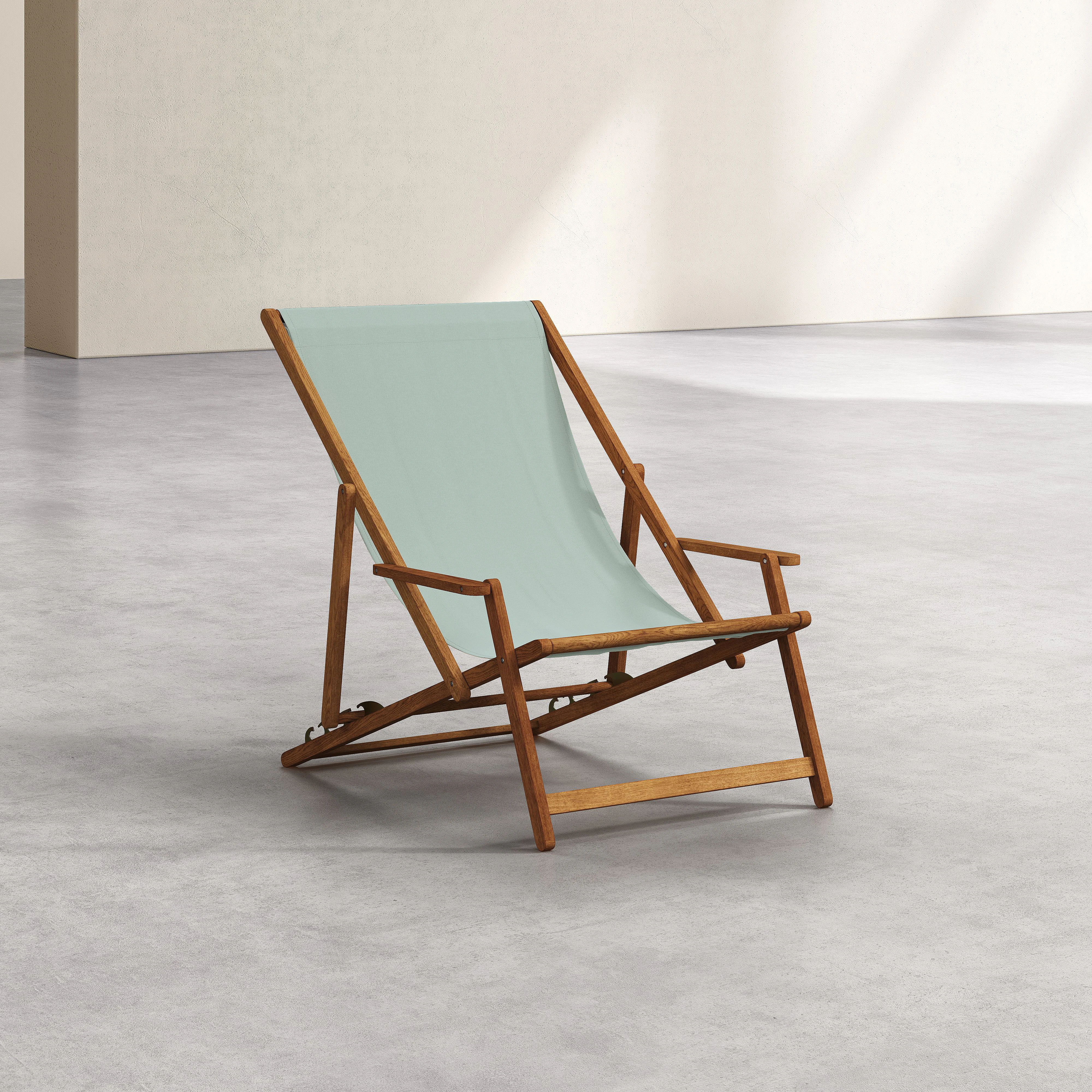 Chilienne avec accoudoirs en chêne et toile en coton - Vert céladon