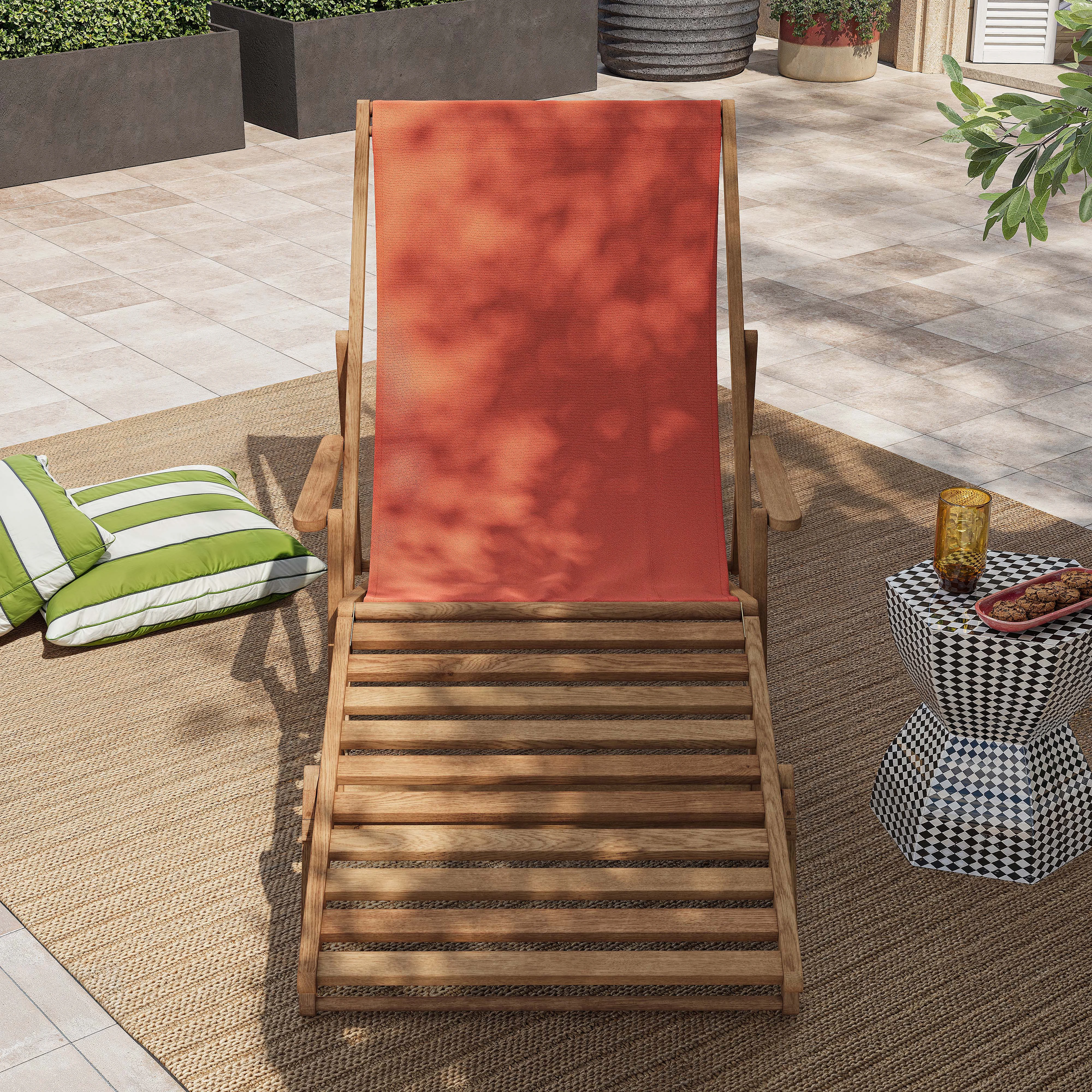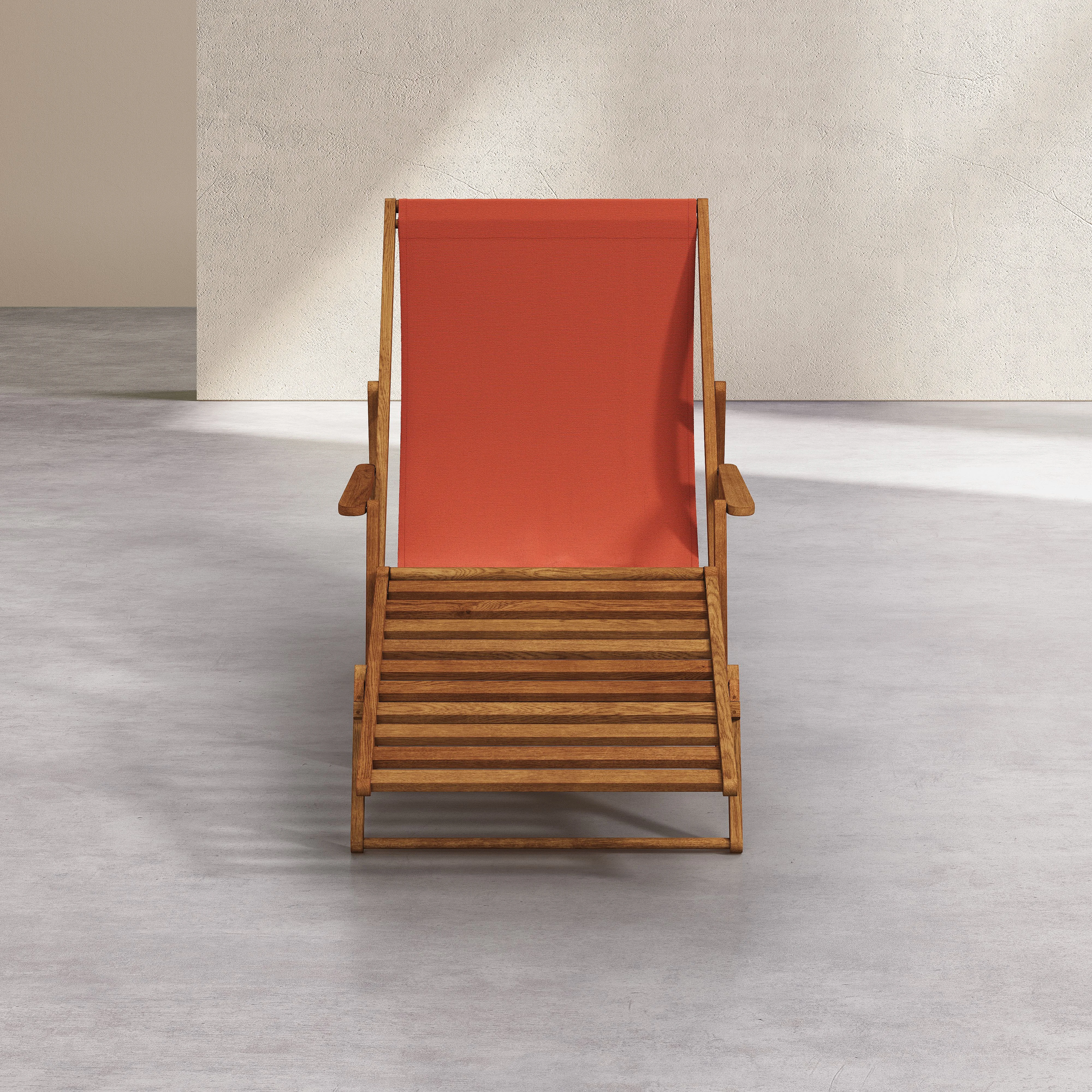 Chilienne en chêne avec accoudoirs et toile en coton avec repose-pieds - Orange brique