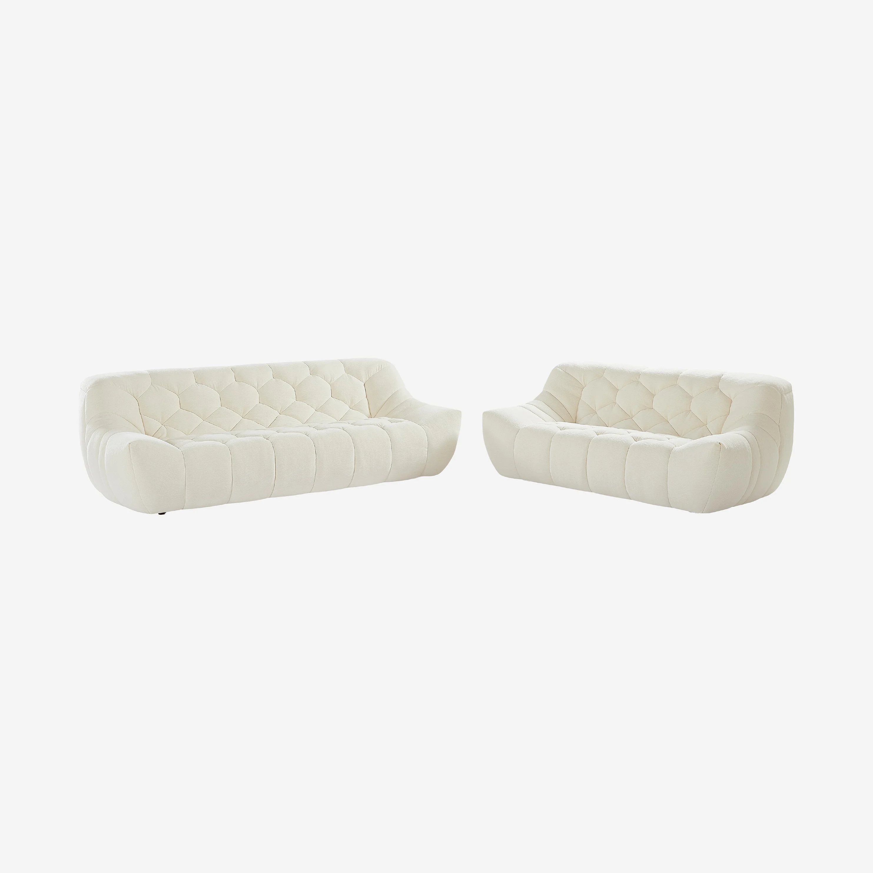 Ensemble de canapés 3 et 2 places matelassés en tissu - Écru