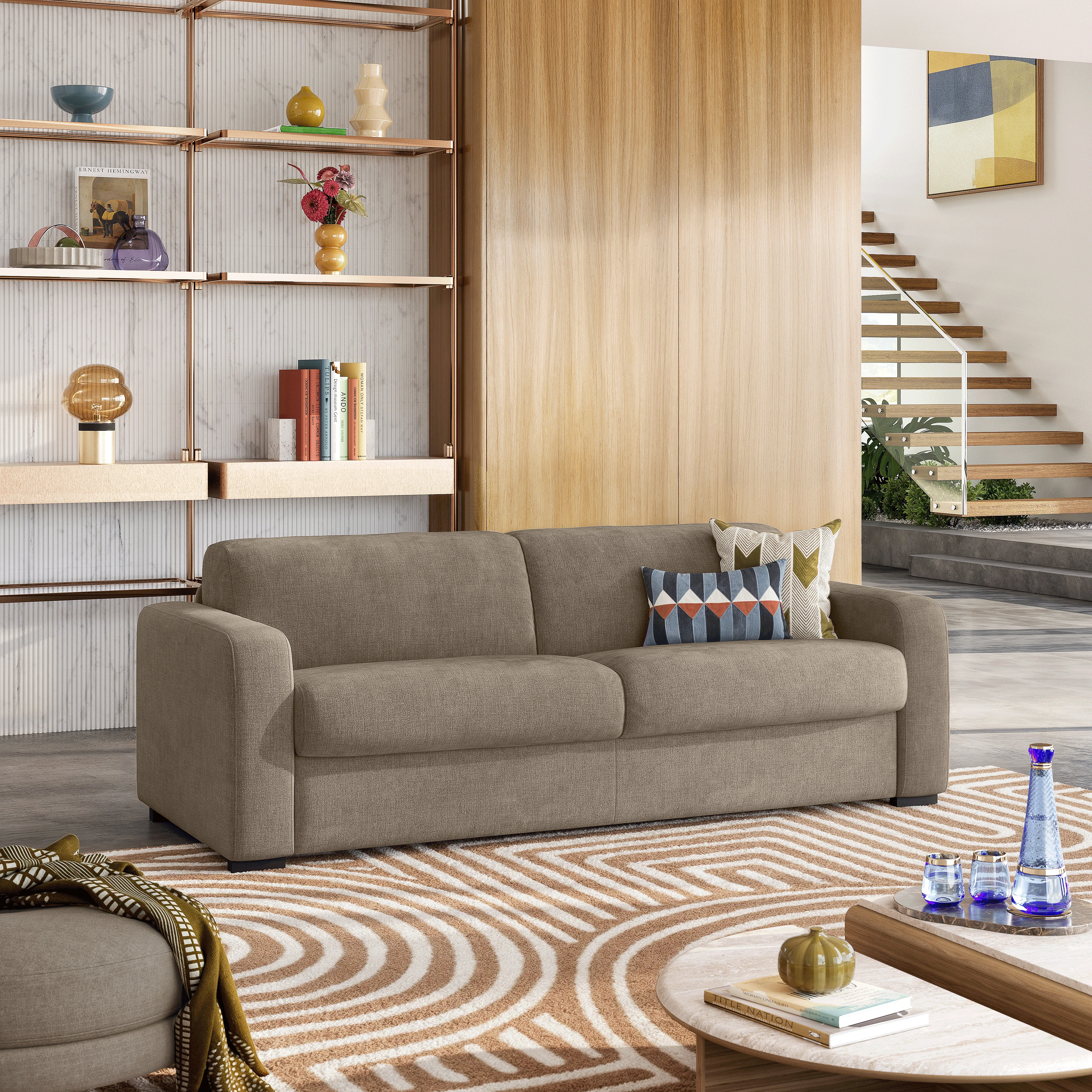 Porto combine une assise moelleuse en plumes et un matelas intégré pour un couchage digne d’un vrai lit. Un canapé convertible pensé pour allier bien-être, style et usage quotidien.