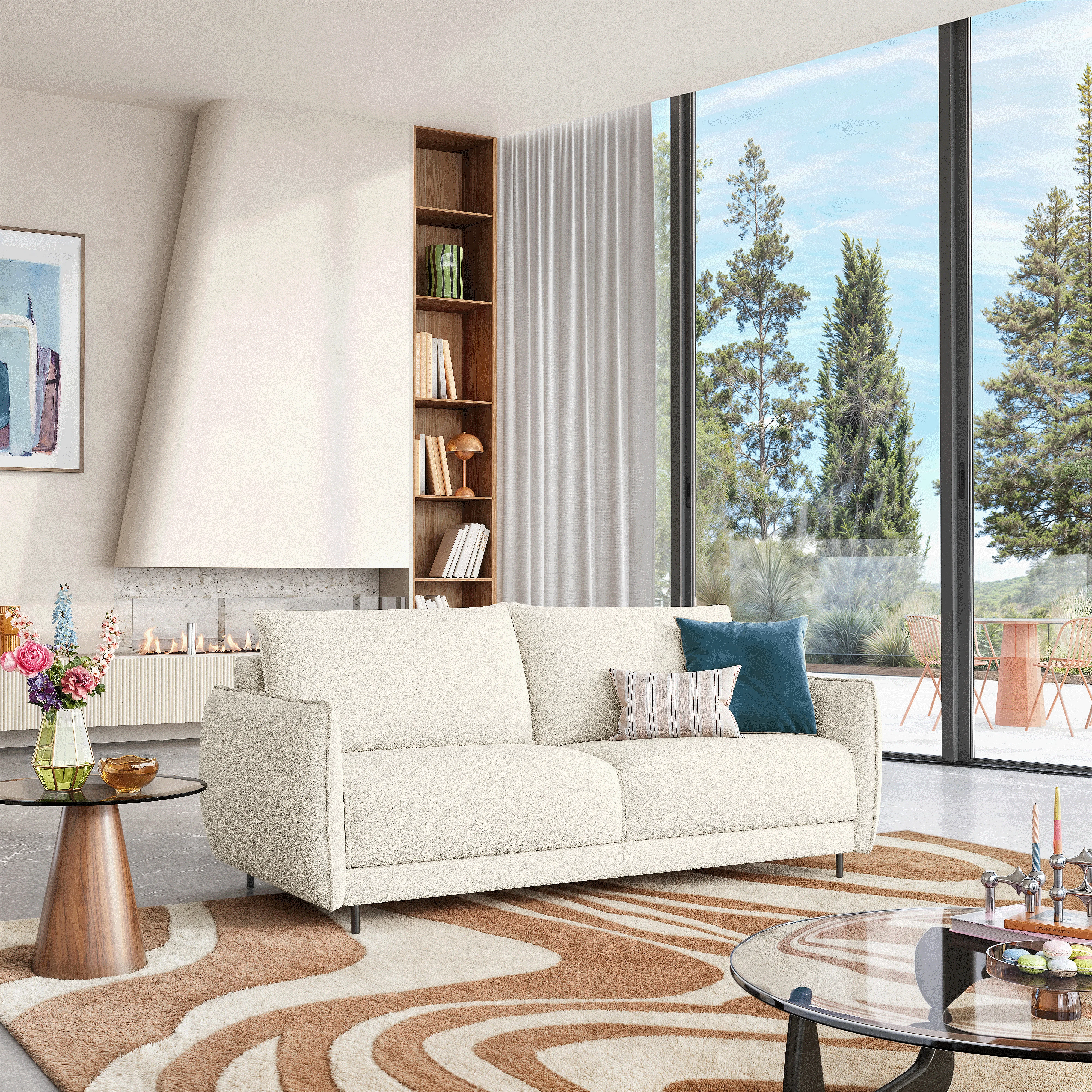 Lignes fuselées, assise accueillante et matelas intégré font du canapé convertible Milano II une pièce à la fois élégante et fonctionnelle. Une solution gain de place pensée pour conjuguer style contemporain et confort quotidien.
