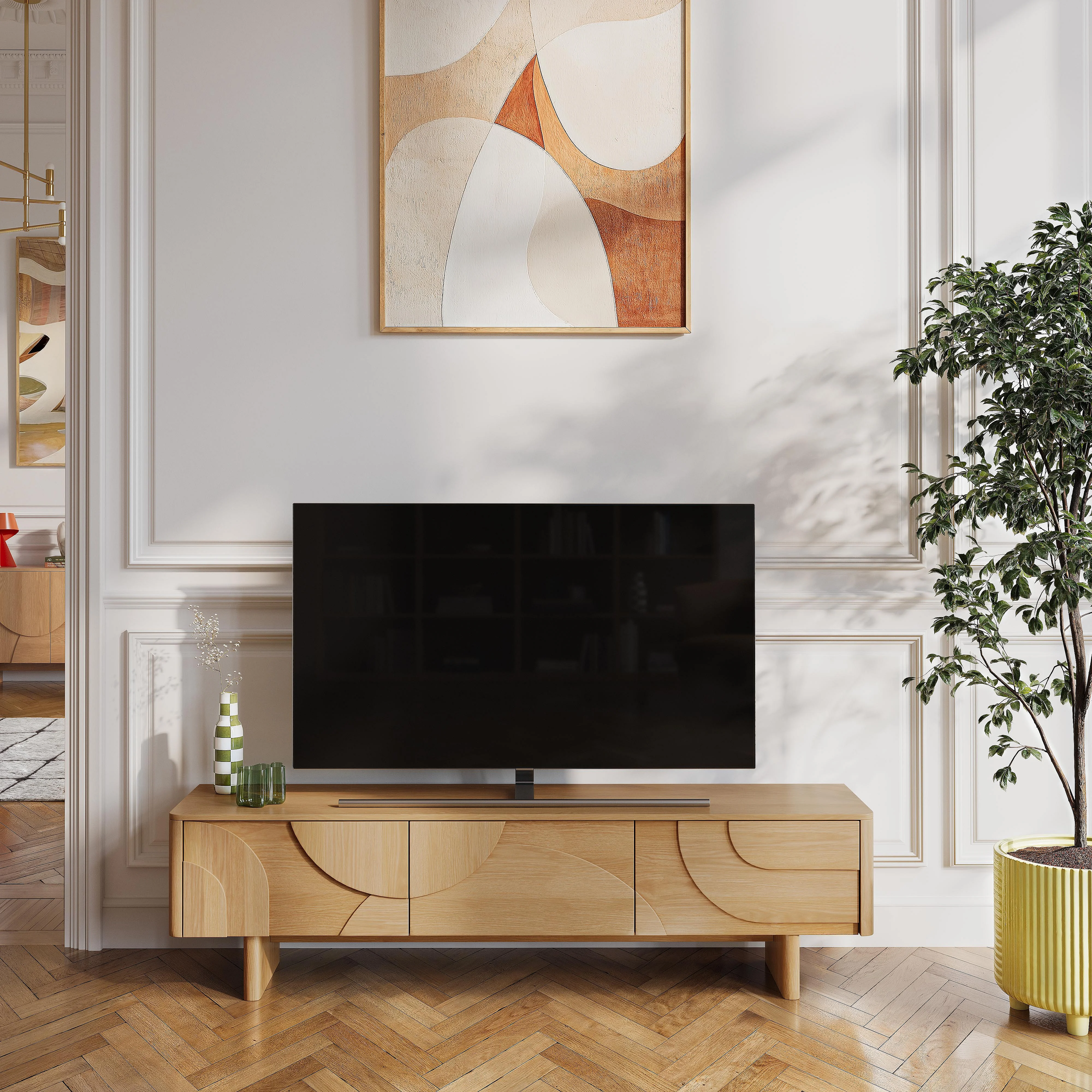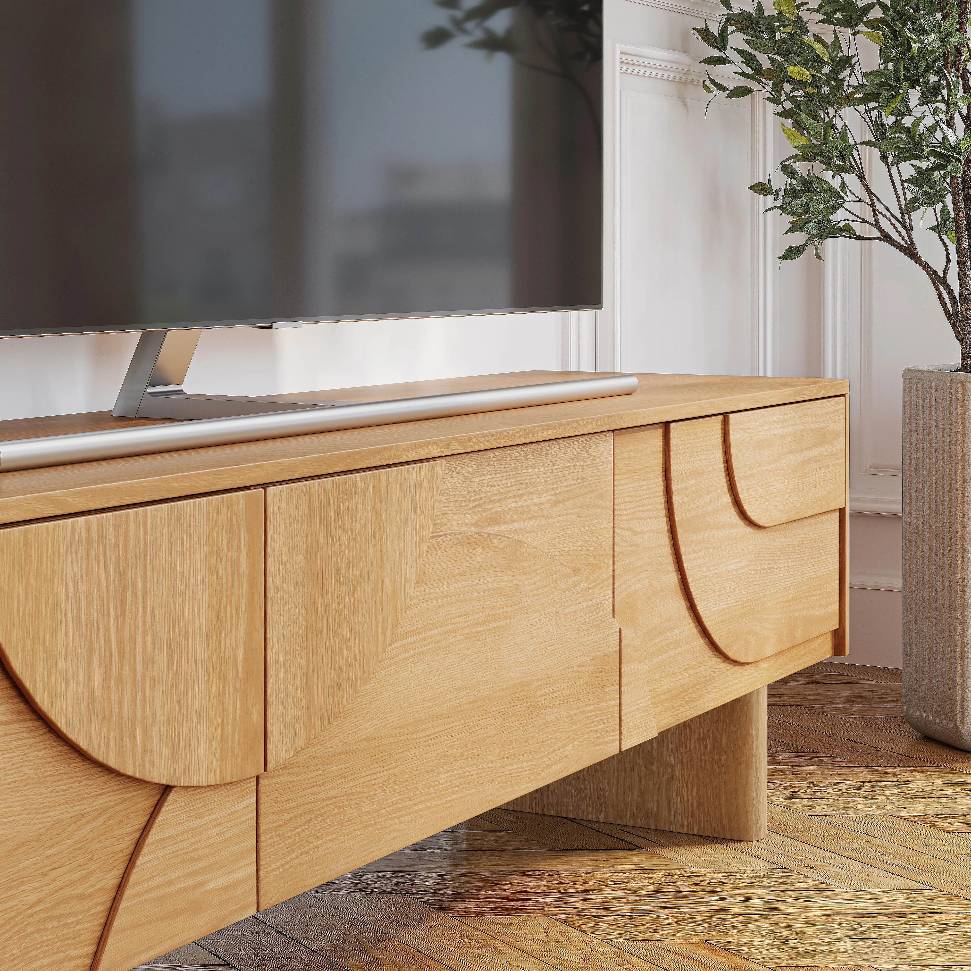 Meuble TV 3 tiroirs en chêne - Naturel - Design by Hélèna Pille