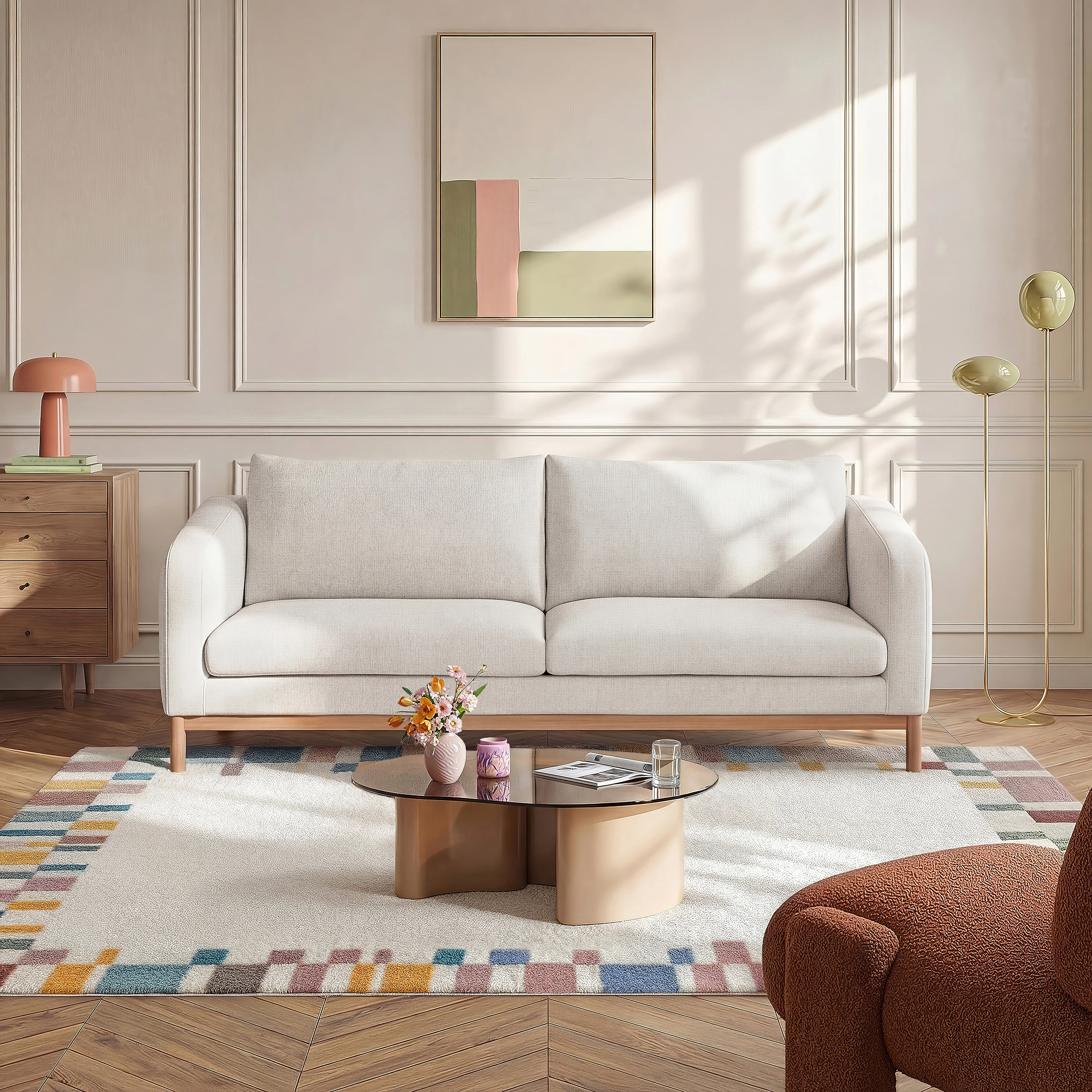 Avec ses lignes épurées et son tissu chenille, le canapé Murcia repose sur des pieds en bois et incarne un design simple et intemporel au confort durable.