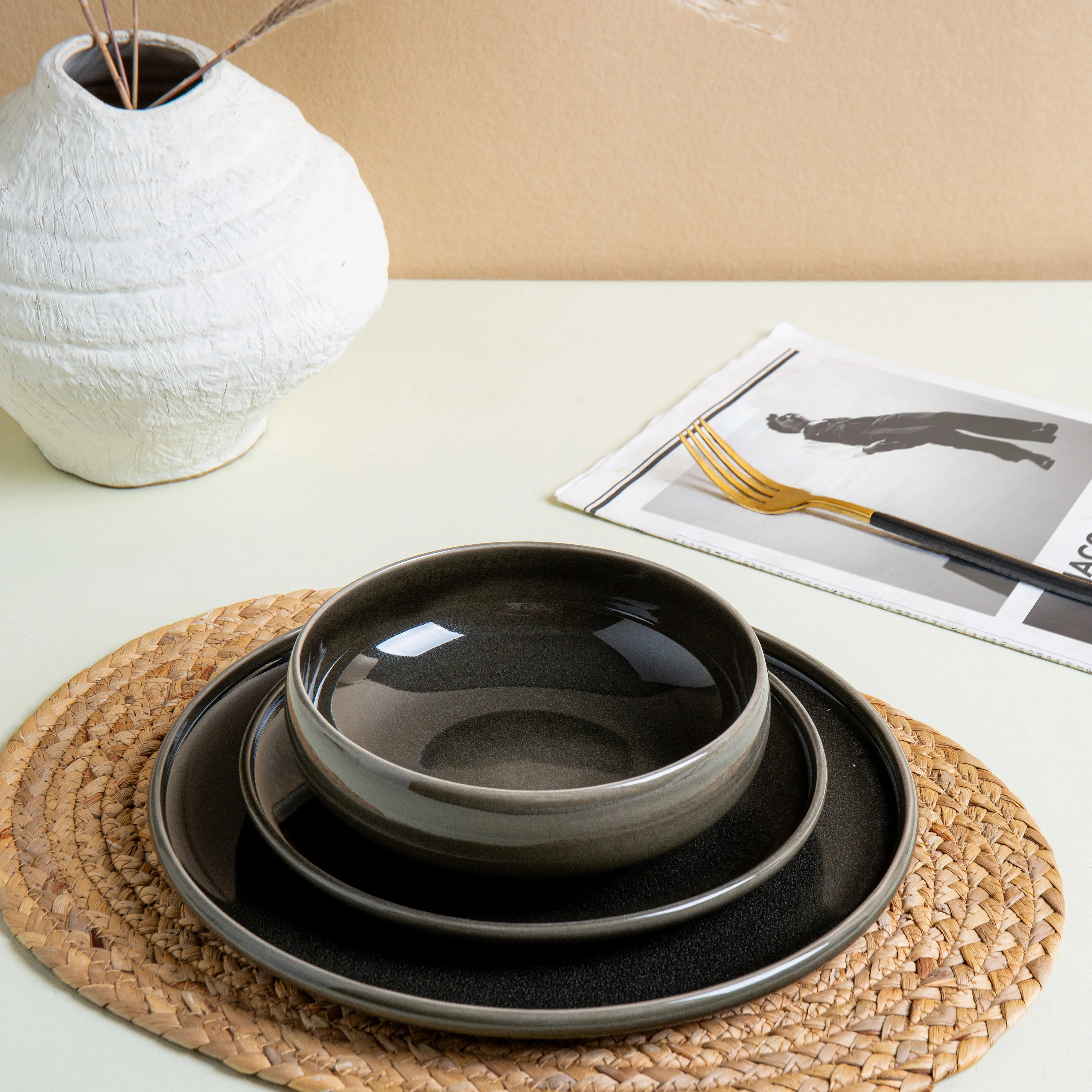 Nagano affirme son caractère à travers des nuances profondes révélées par un émail réactif unique. Conçu en grès dense et résistant, il supporte les chocs, les rayures et les variations de température modérées.
