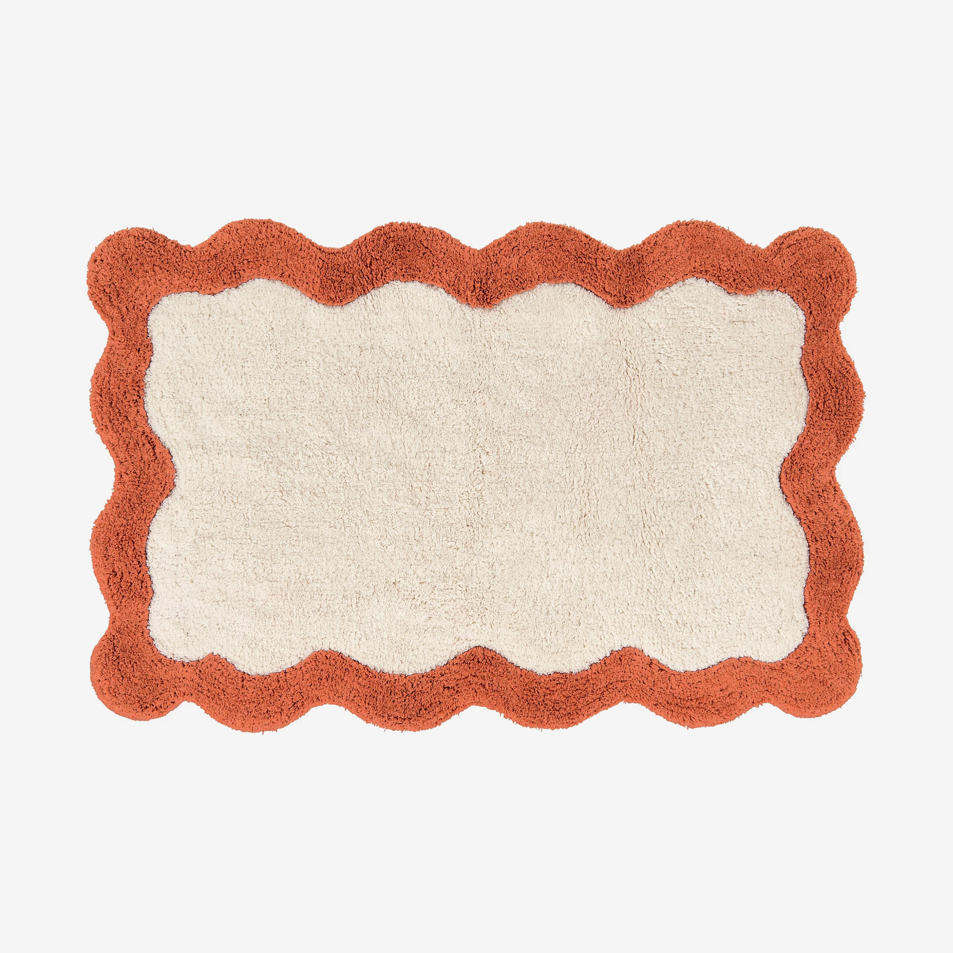 Tapis de bain festonné en coton naturel - 1200 g/m² - 50 x 80 cm - Terracotta