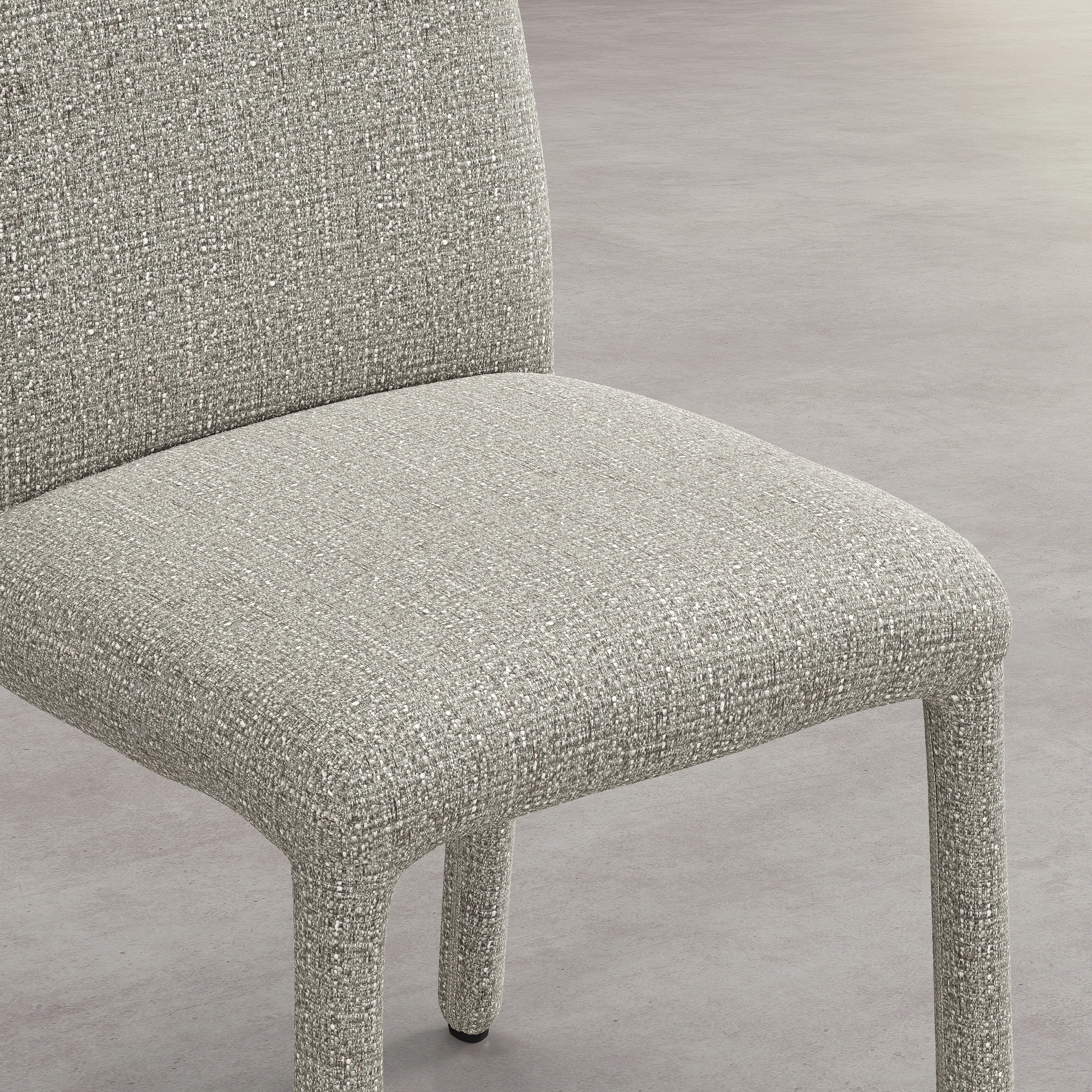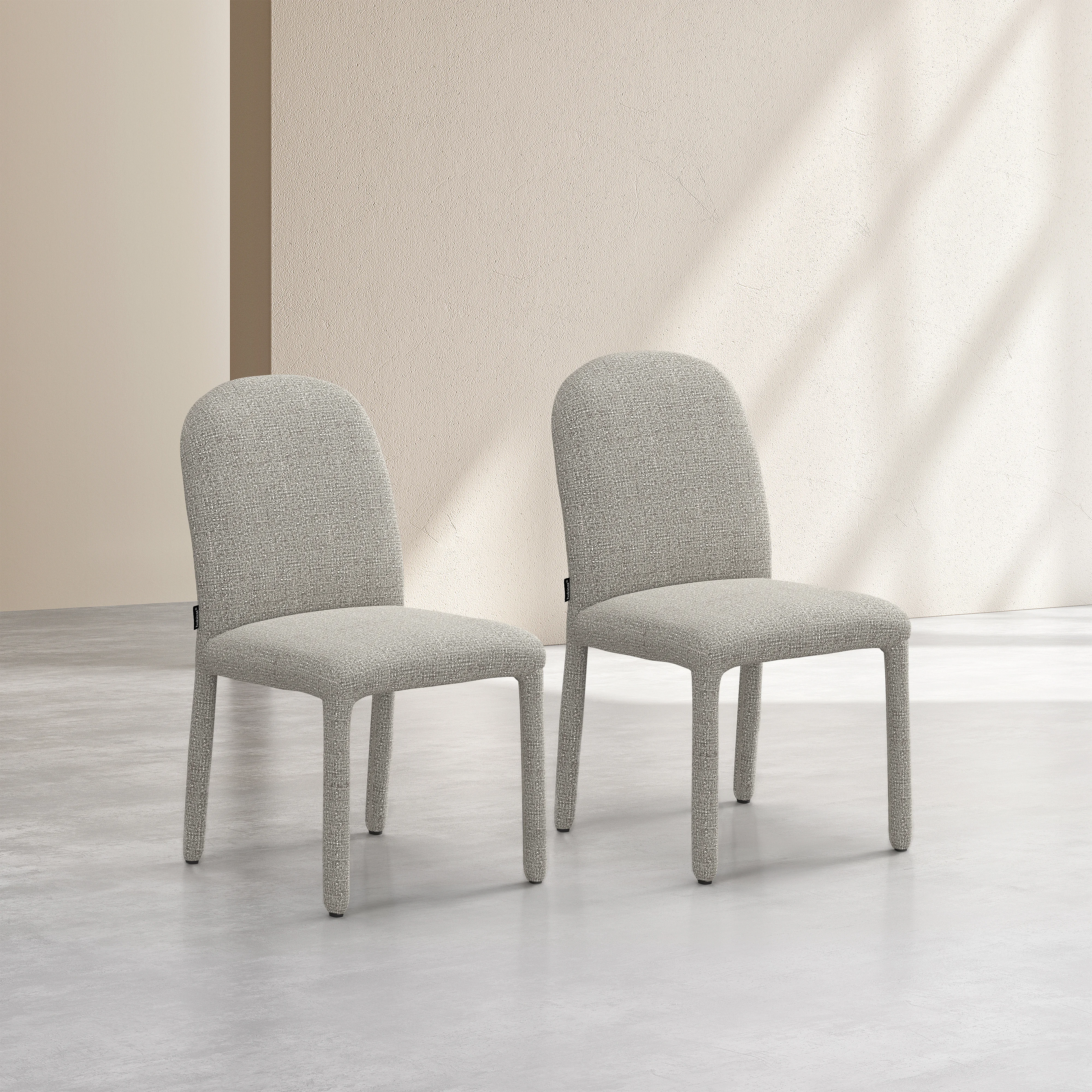 Silhouette épurée et tissu texturé s’unissent pour offrir une assise sobre et confortable. Ce lot de deux chaises incarne une élégance discrète, idéale au quotidien.