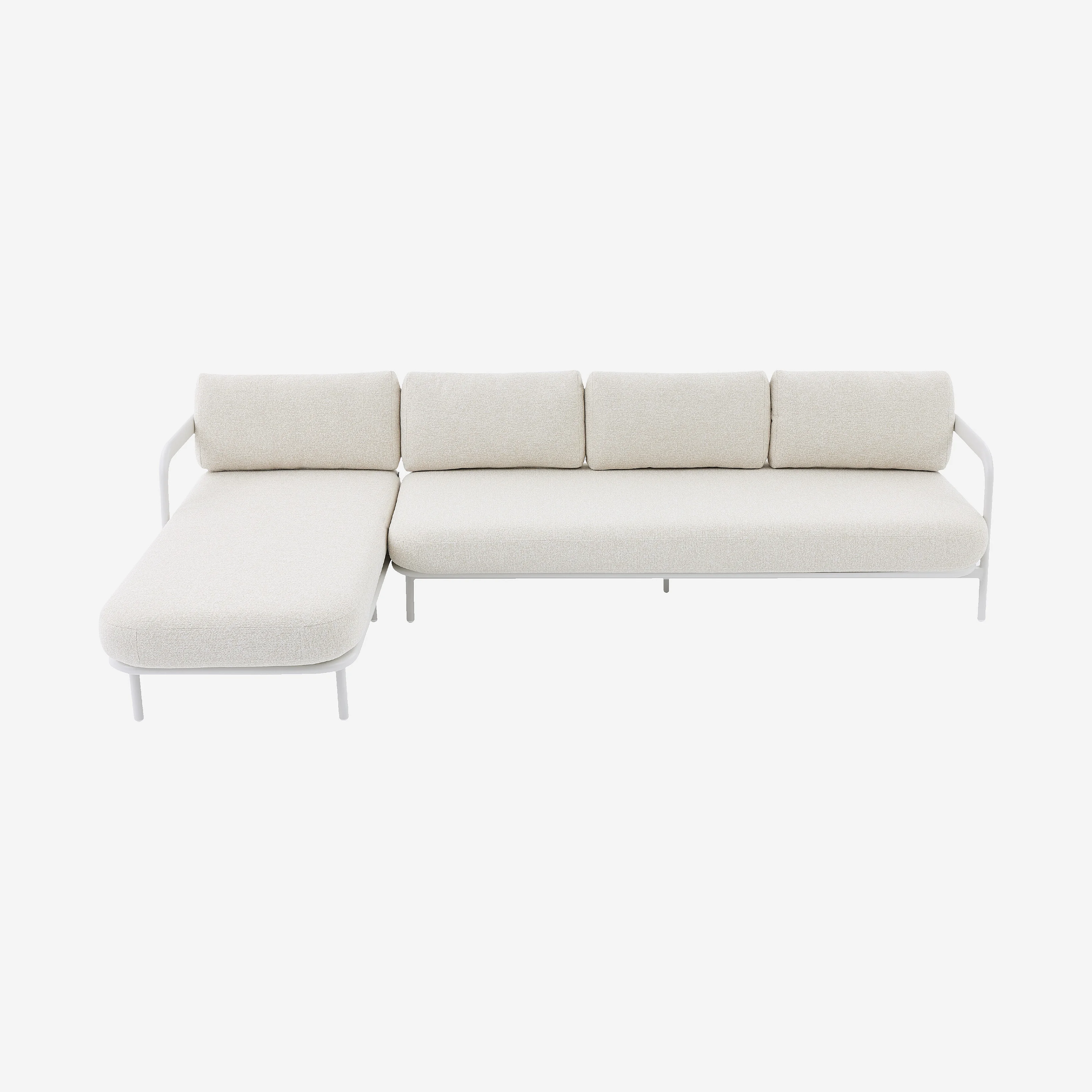 Canapé d'angle gauche de jardin en aluminium et tissu texturé déperlant - Crème et blanc cassé