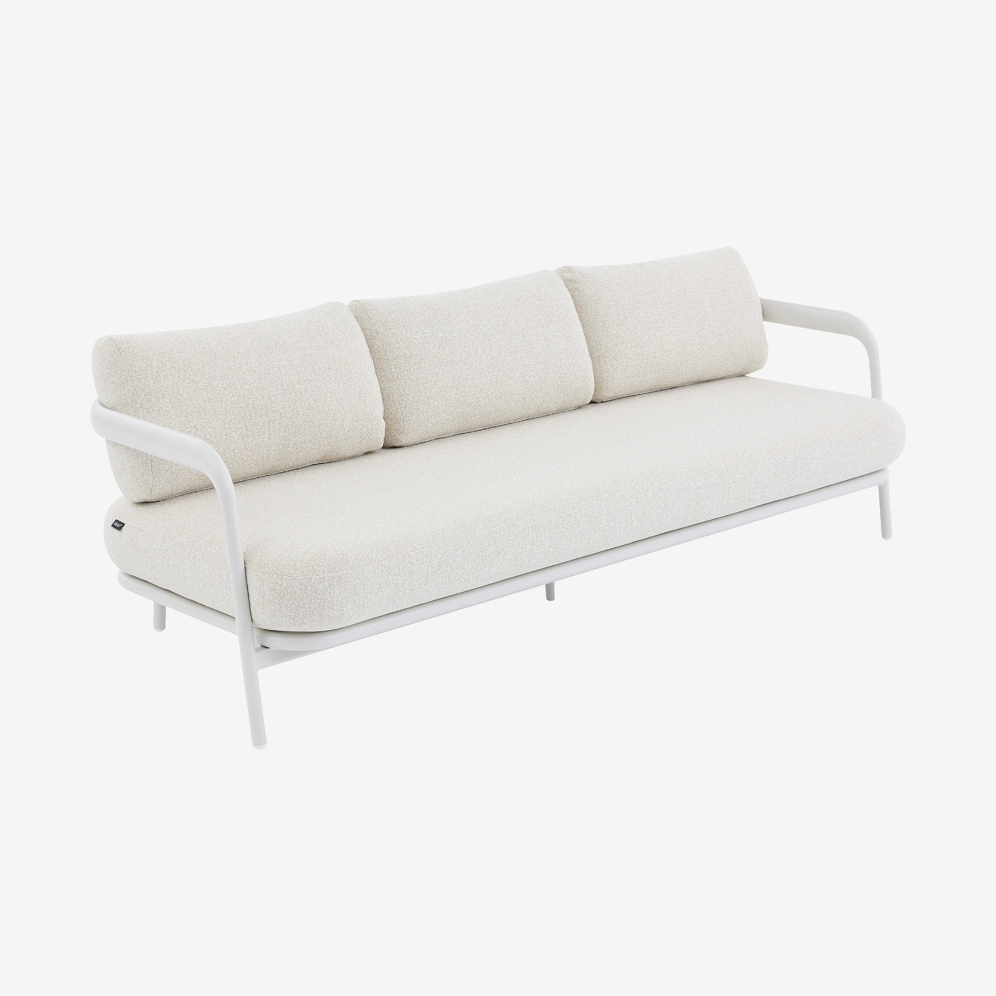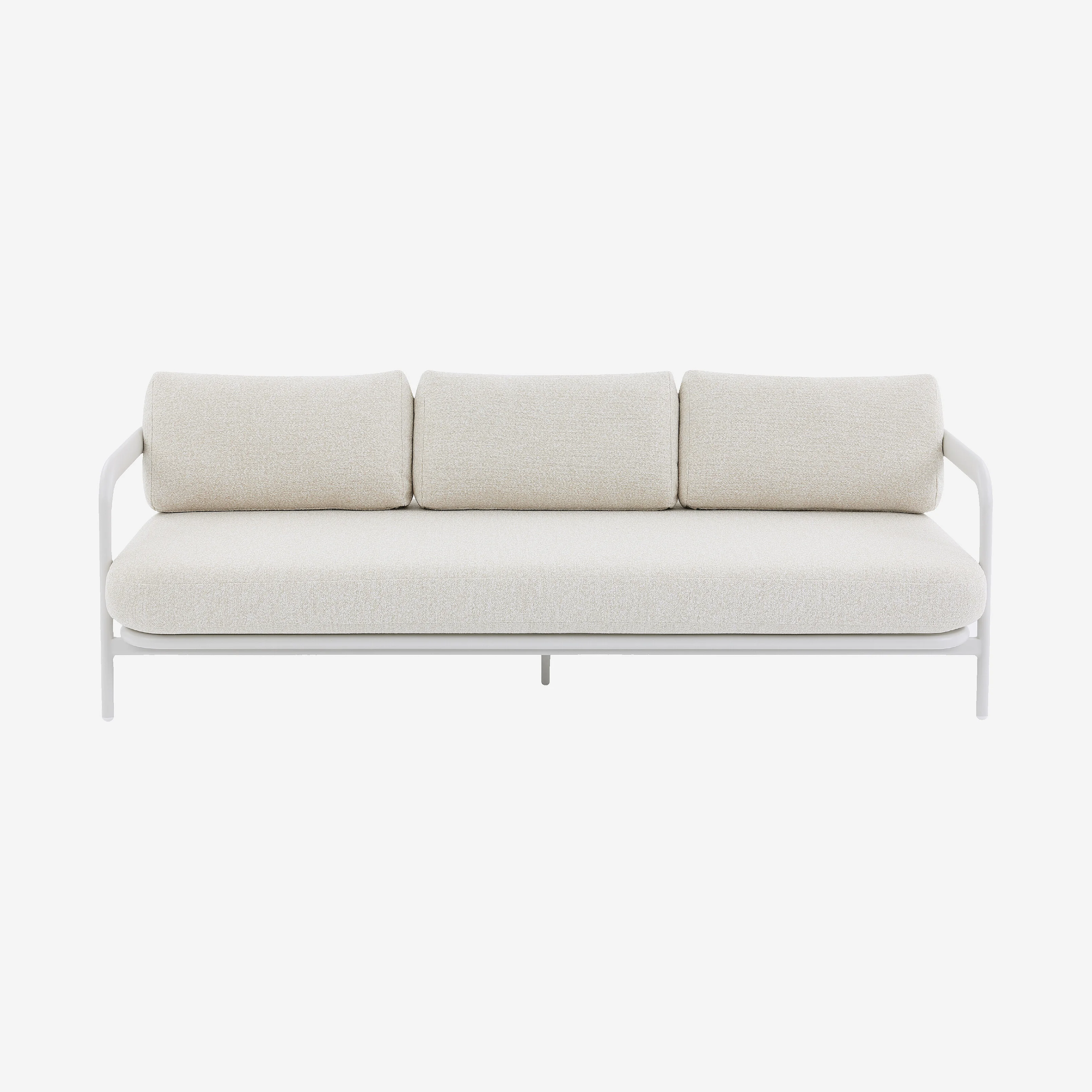 Canapé de jardin 3 places en aluminium et tissu texturé déperlant - Crème et blanc cassé