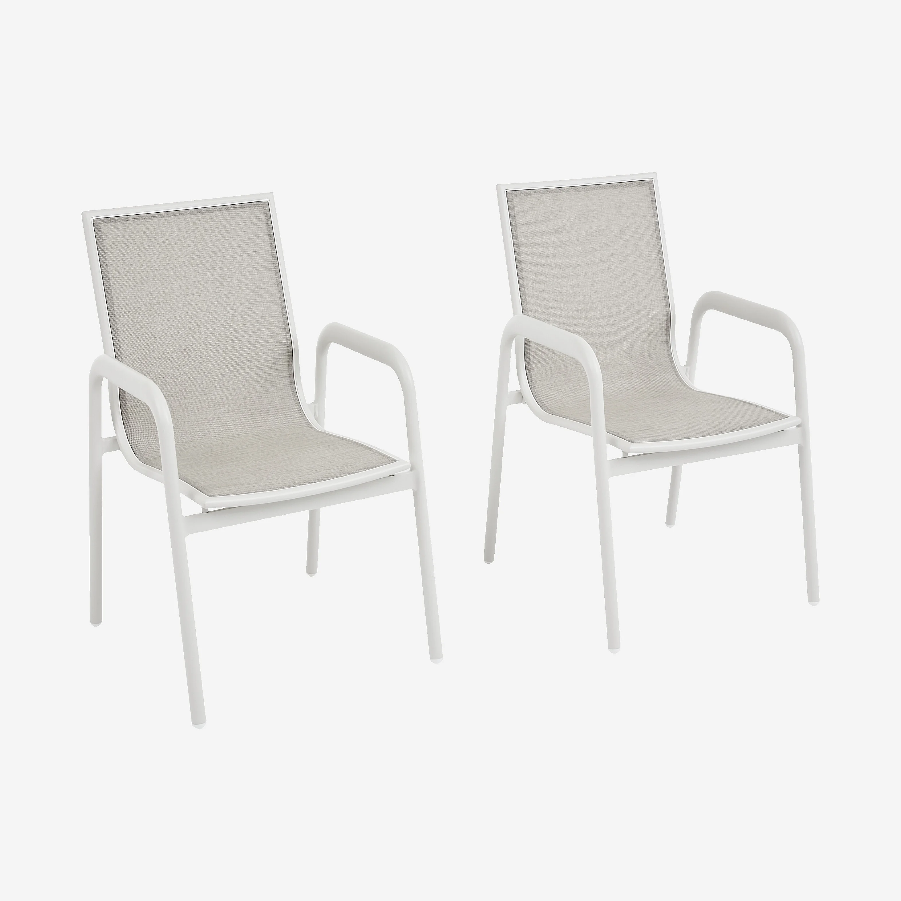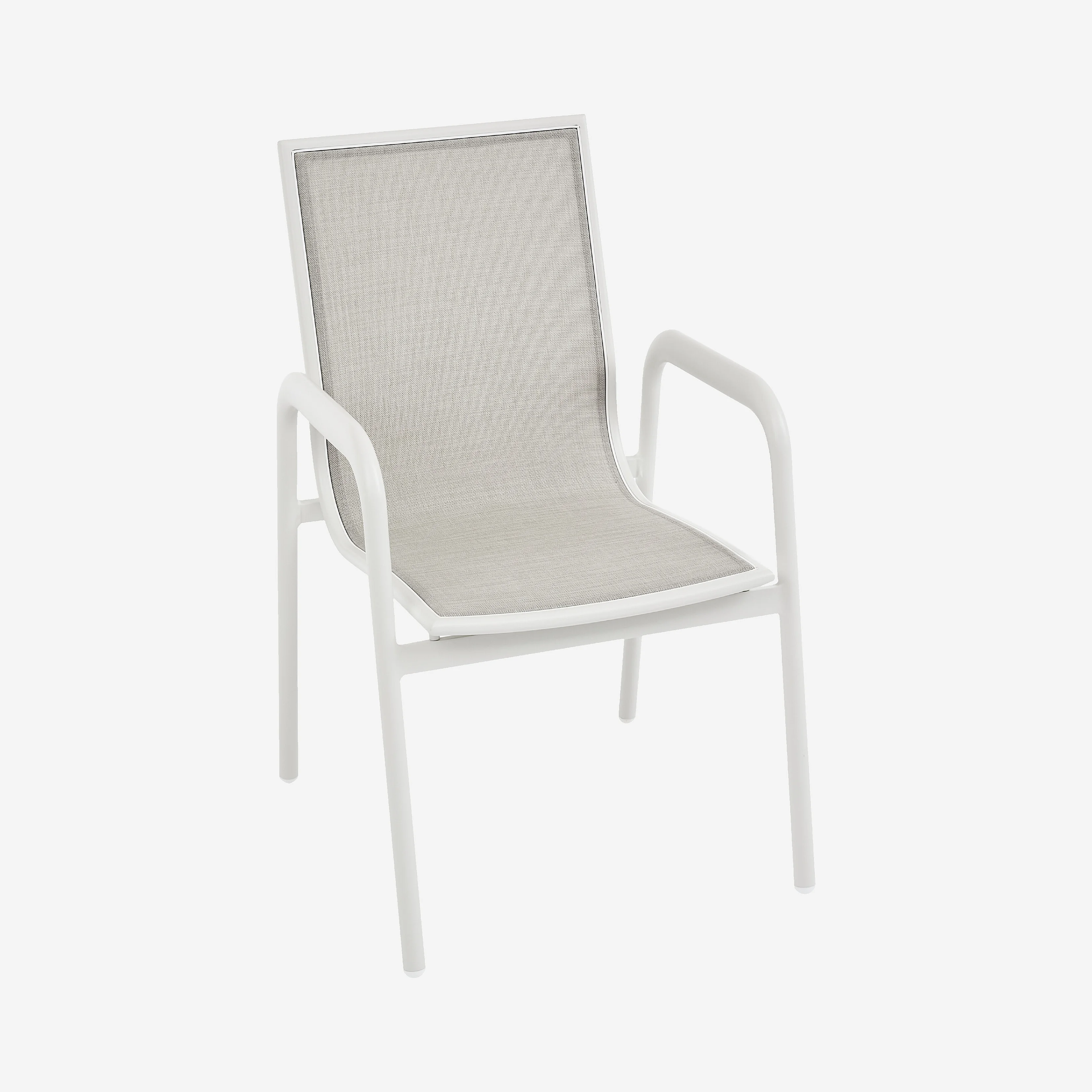 Chaise de jardin en aluminium et tissu déperlant - Gris clair et blanc cassé