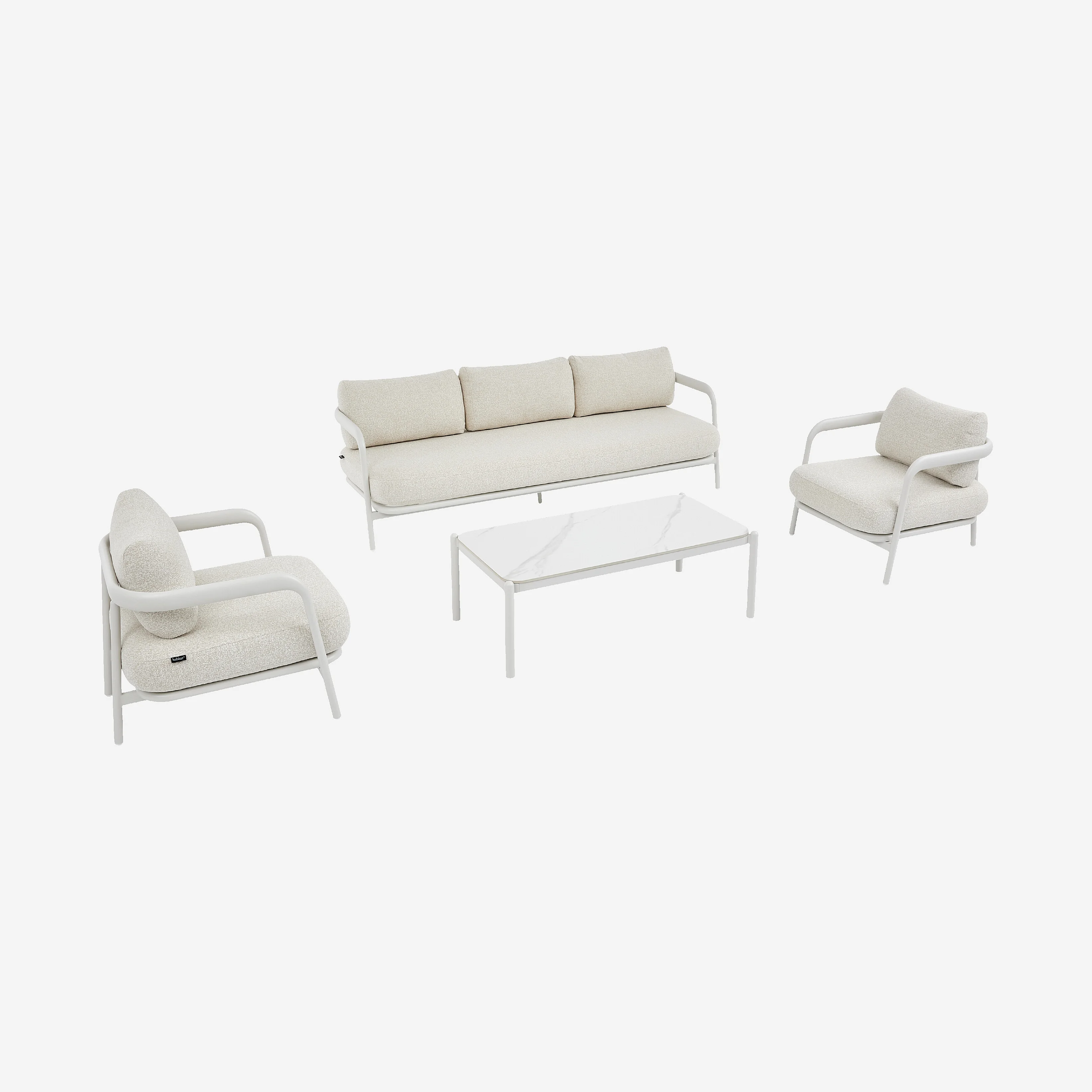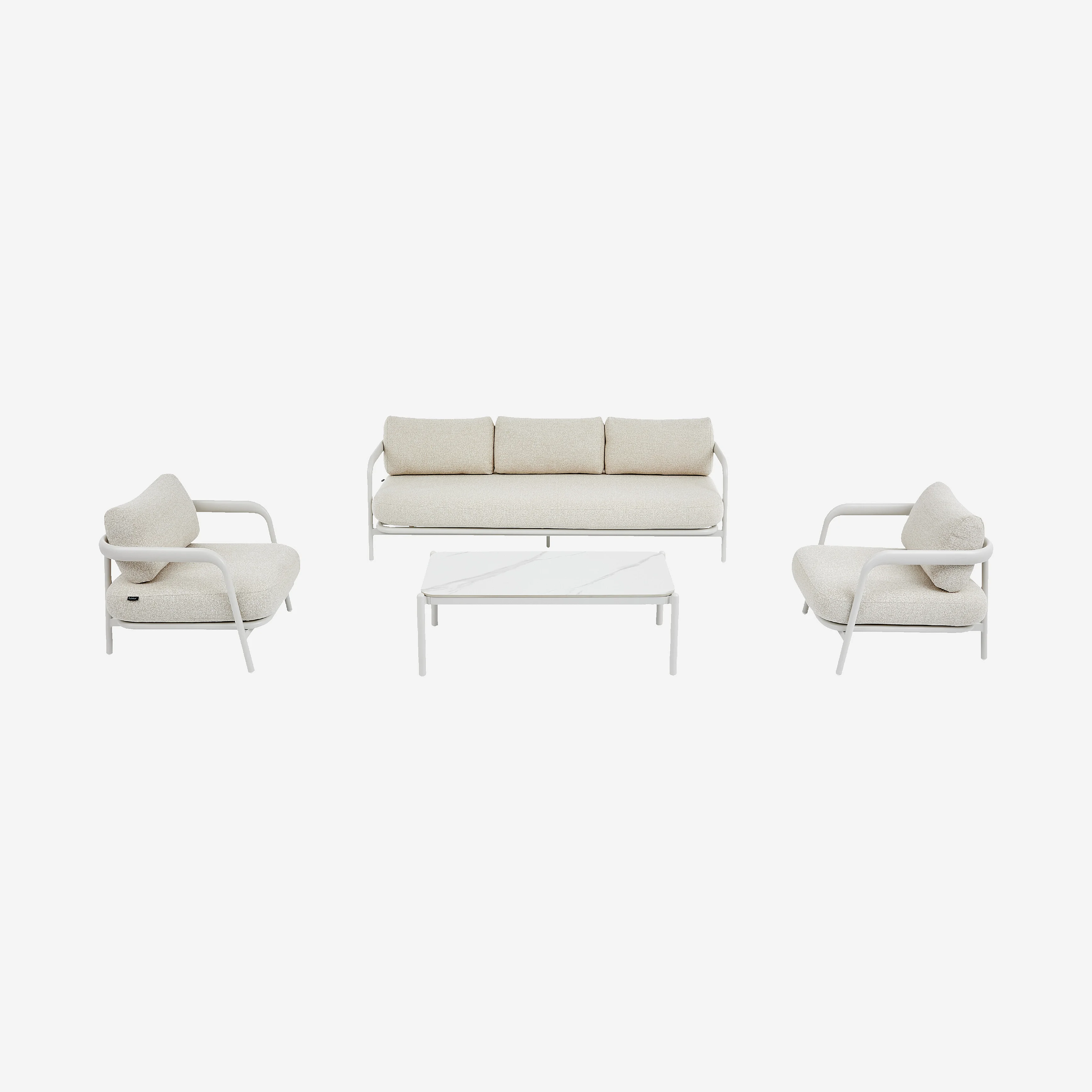 Ensemble de salon de jardin 5 places et table basse rectangulaire - Crème et blanc cassé