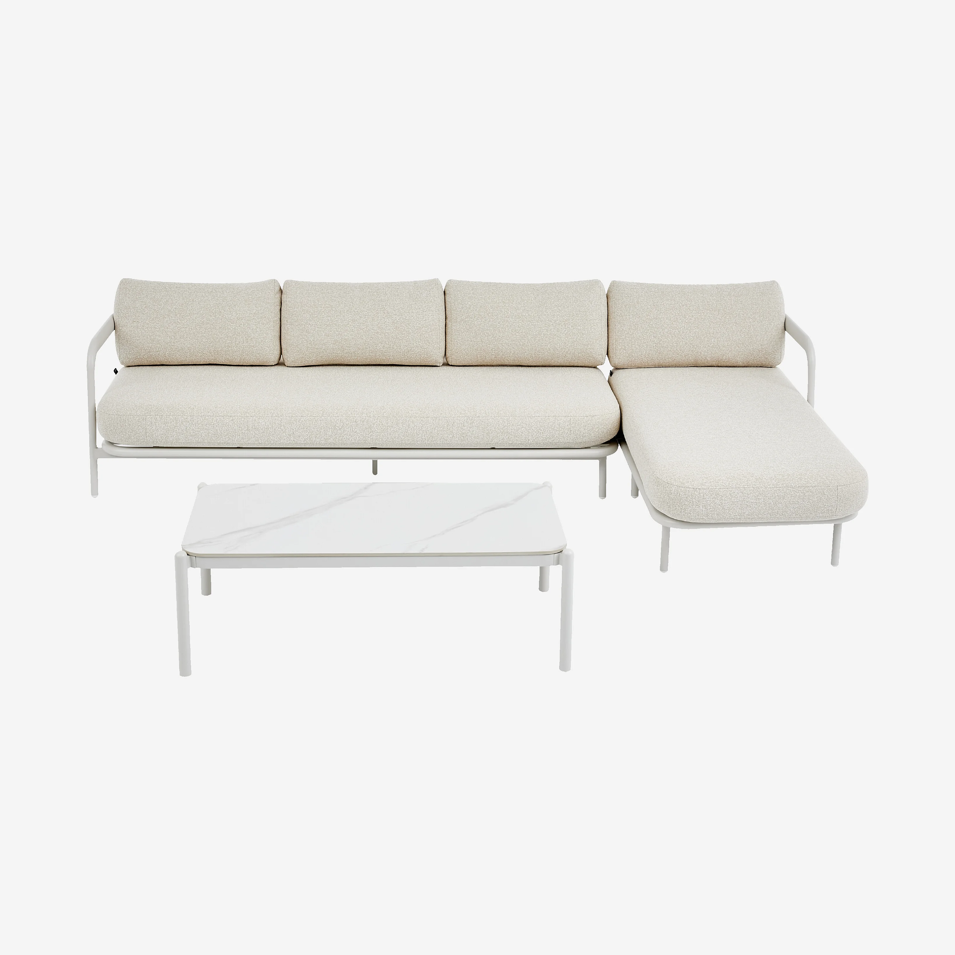 Ensemble de salon de jardin d'angle droit et table basse rectangulaire - Crème et blanc cassé