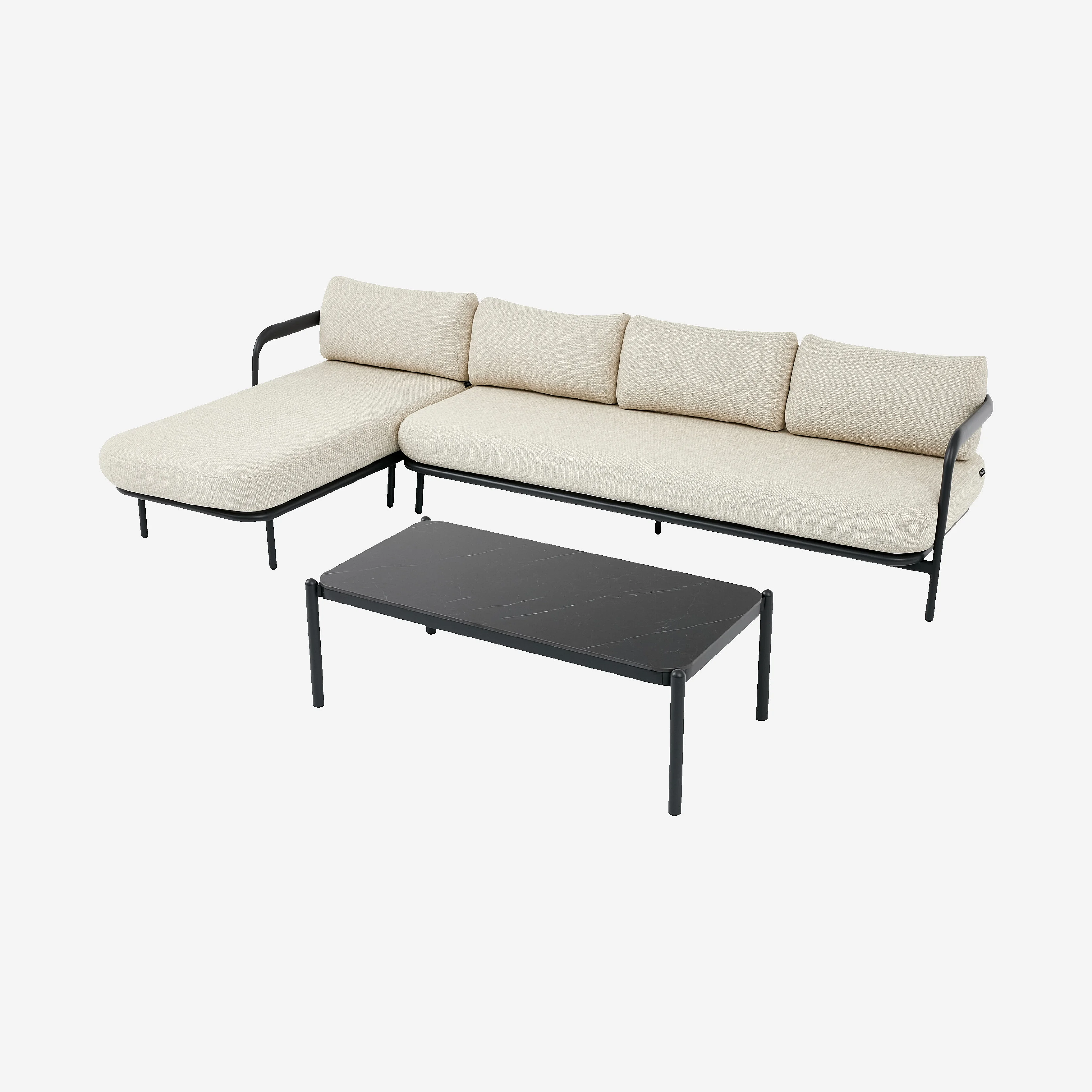 Ensemble de salon de jardin d'angle gauche et table basse rectangulaire - Beige mélangé et gris anthracite