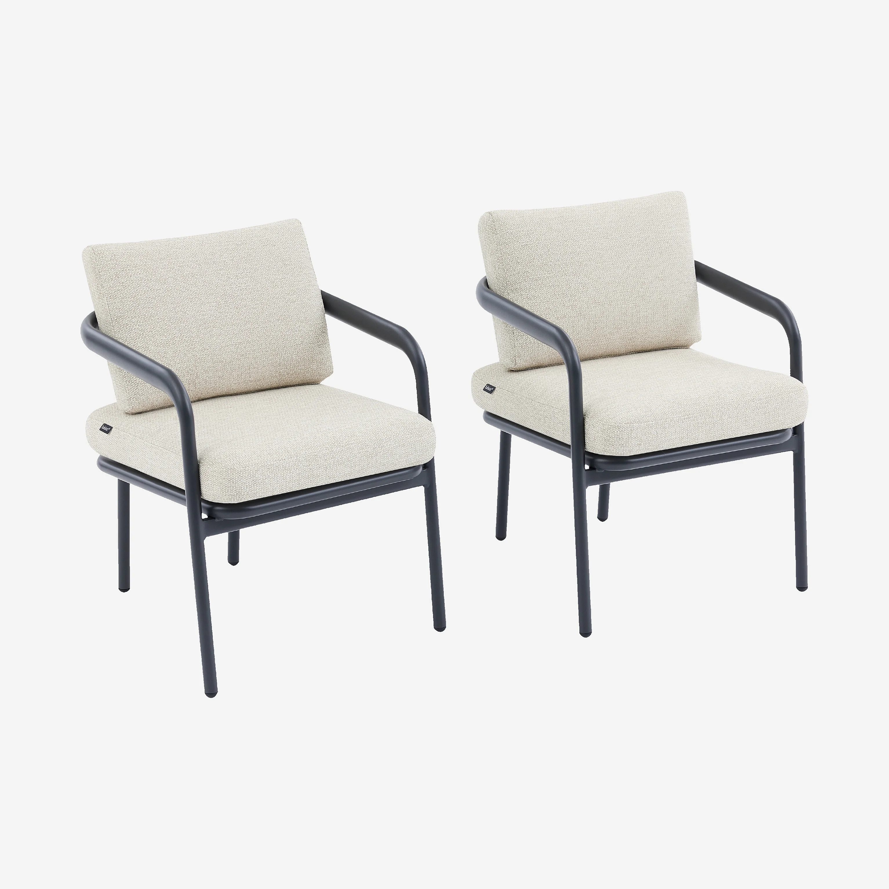 Lot de 2 chaises de jardin en aluminium et tissu tissé déperlant - Beige mélangé et gris anthracite