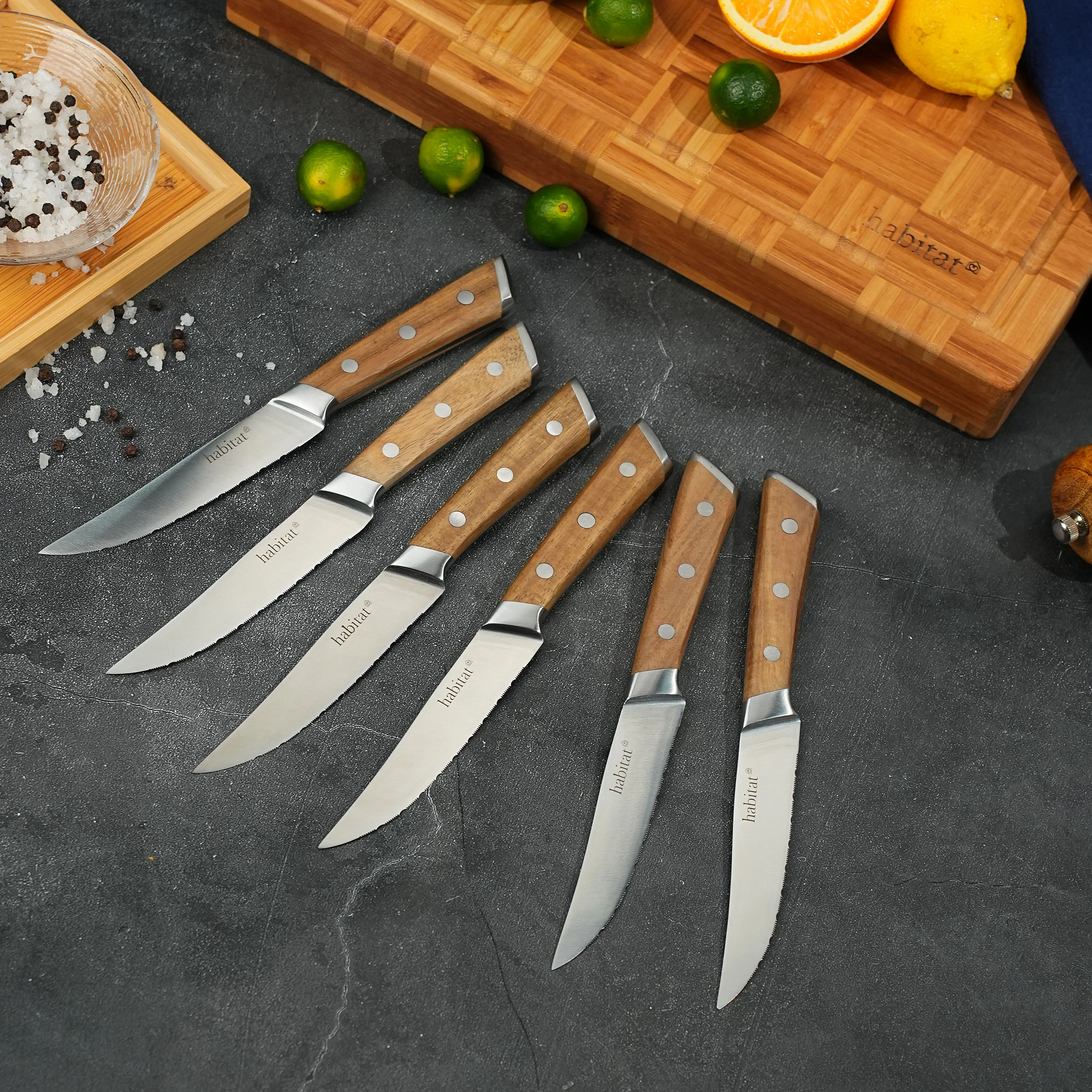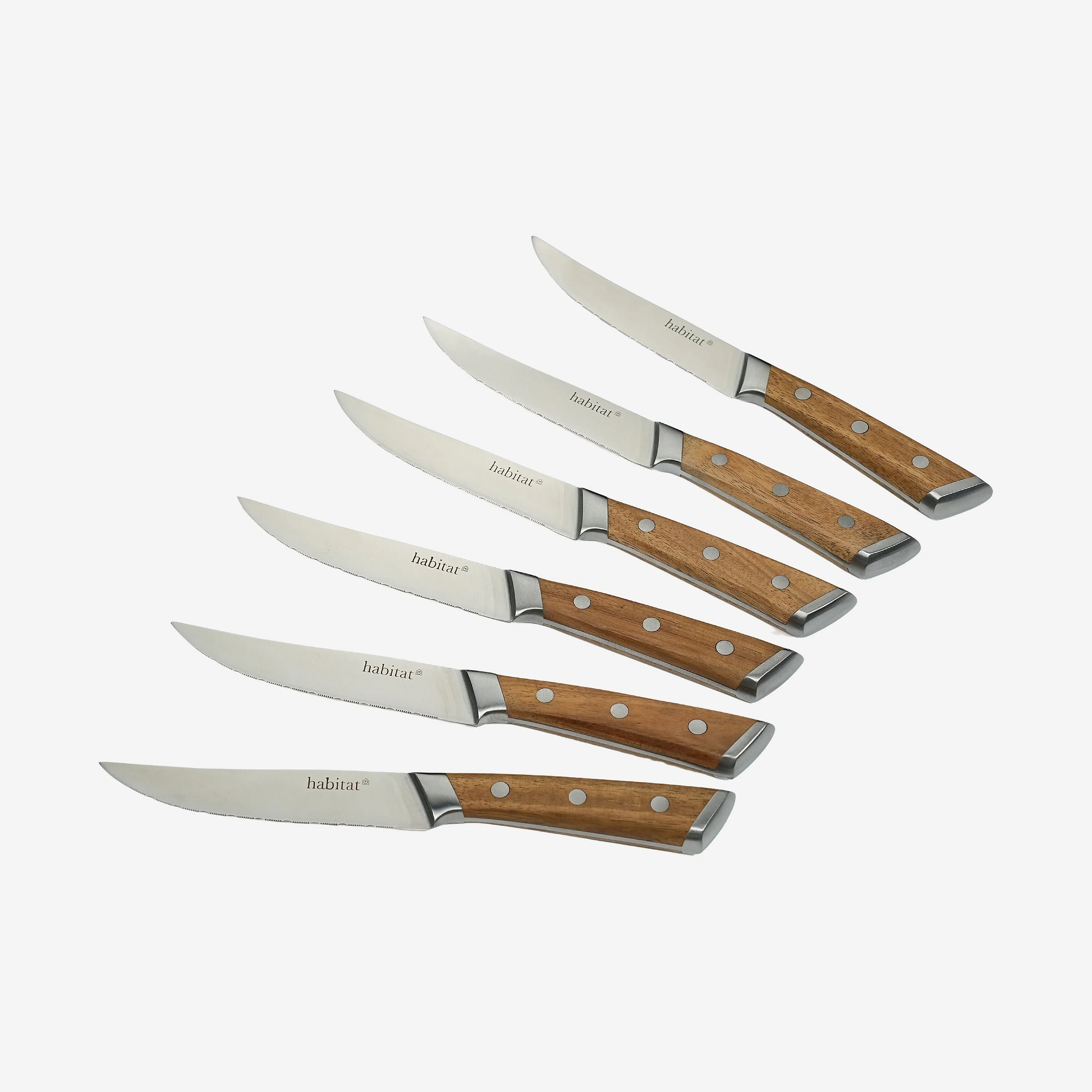Lot de 6 couteaux à steak en acier inoxydable et bois d'acacia - 22 cm - Naturel