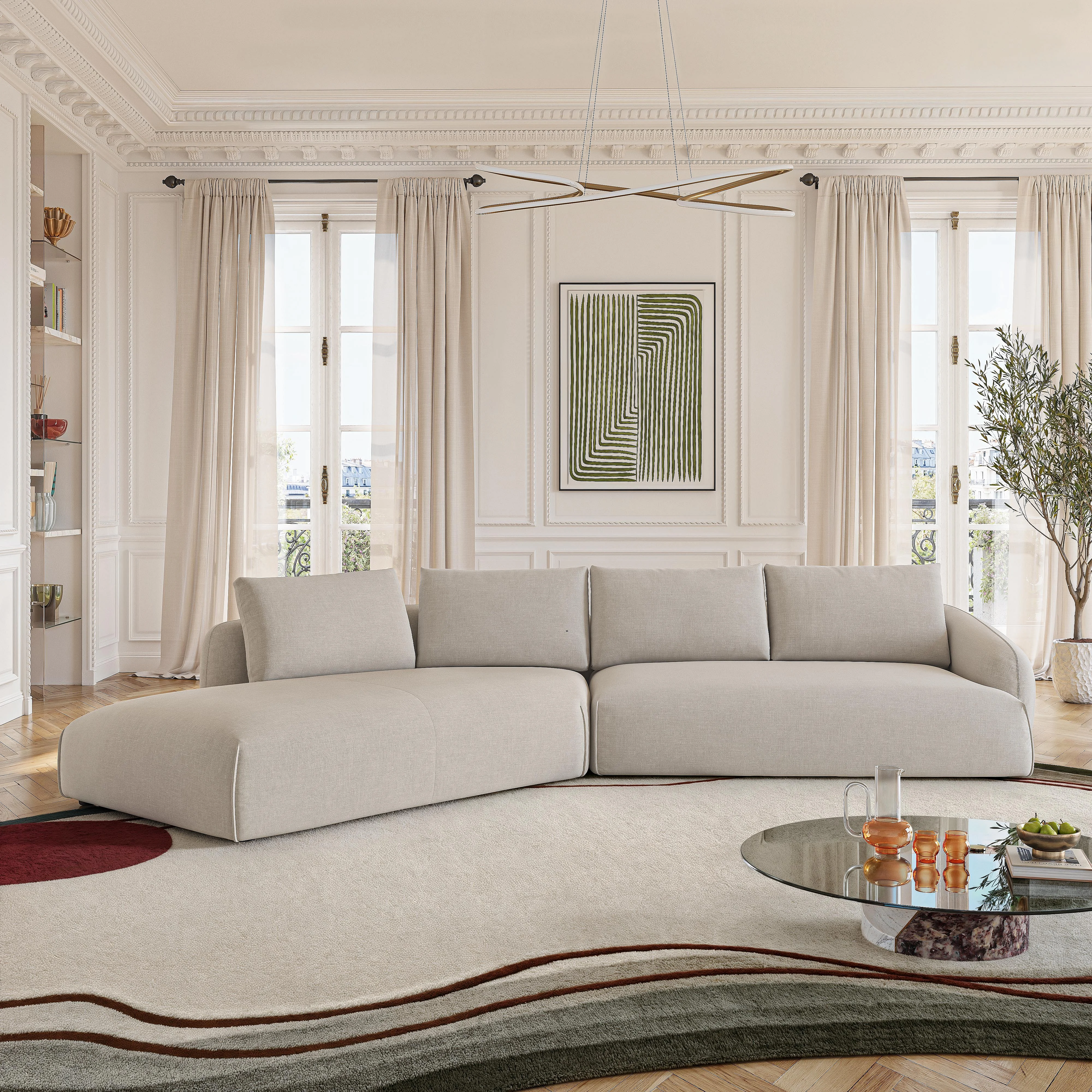 Canapé d'angle gauche en tissu garni de plumes - Beige
