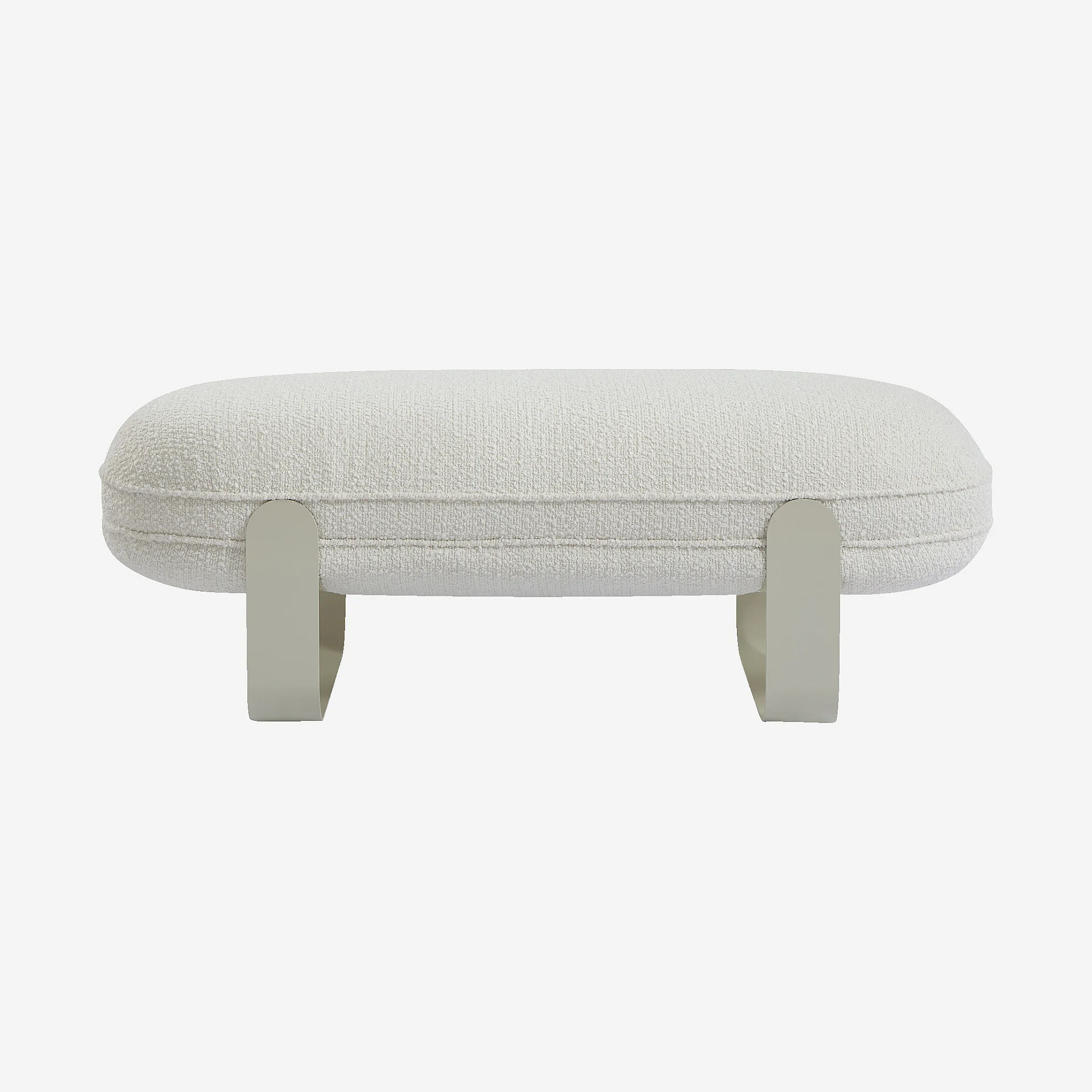 Banc en tissu bouclette et métal - Blanc et beige