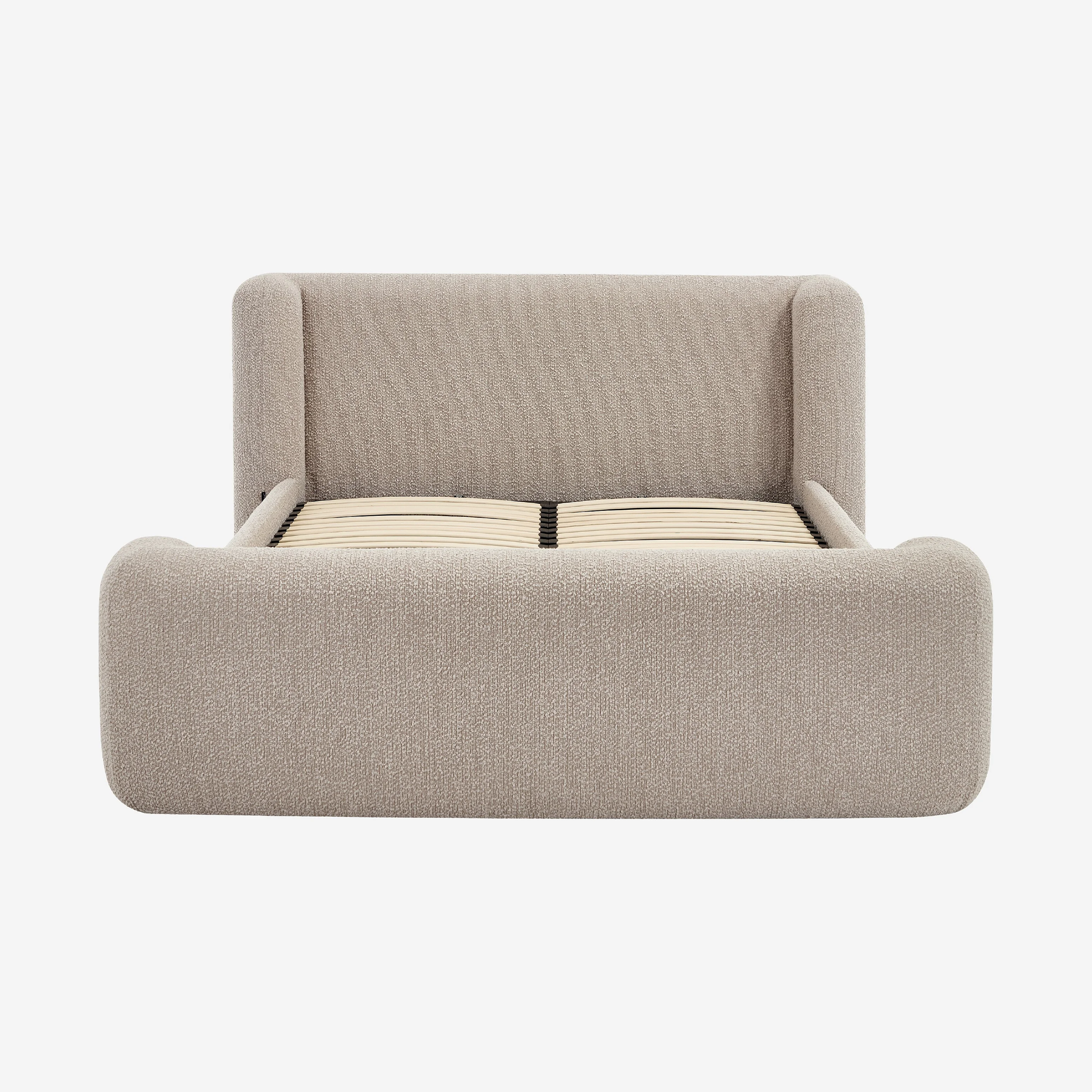 Lit 180 x 200 cm en tissu bouclette - Grège