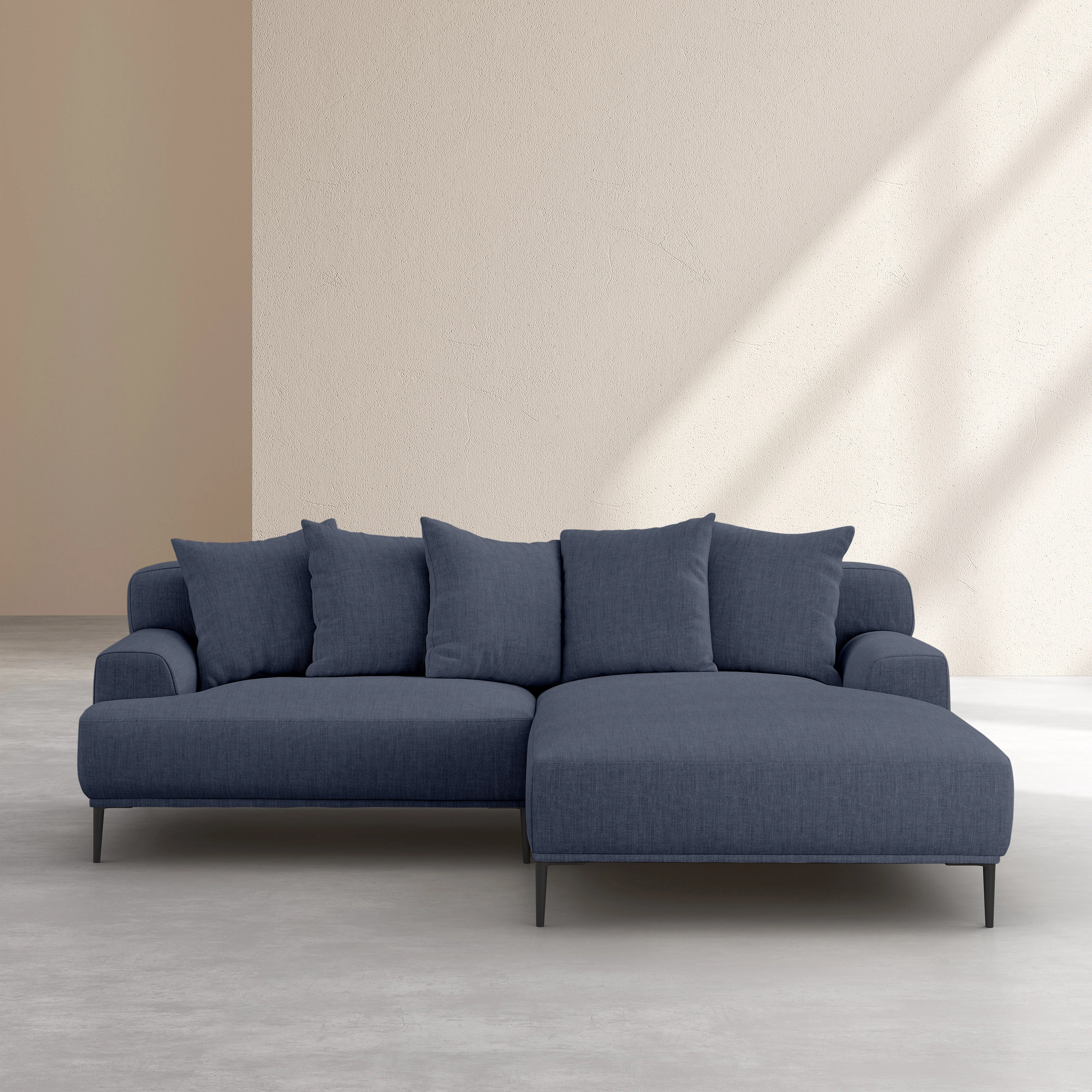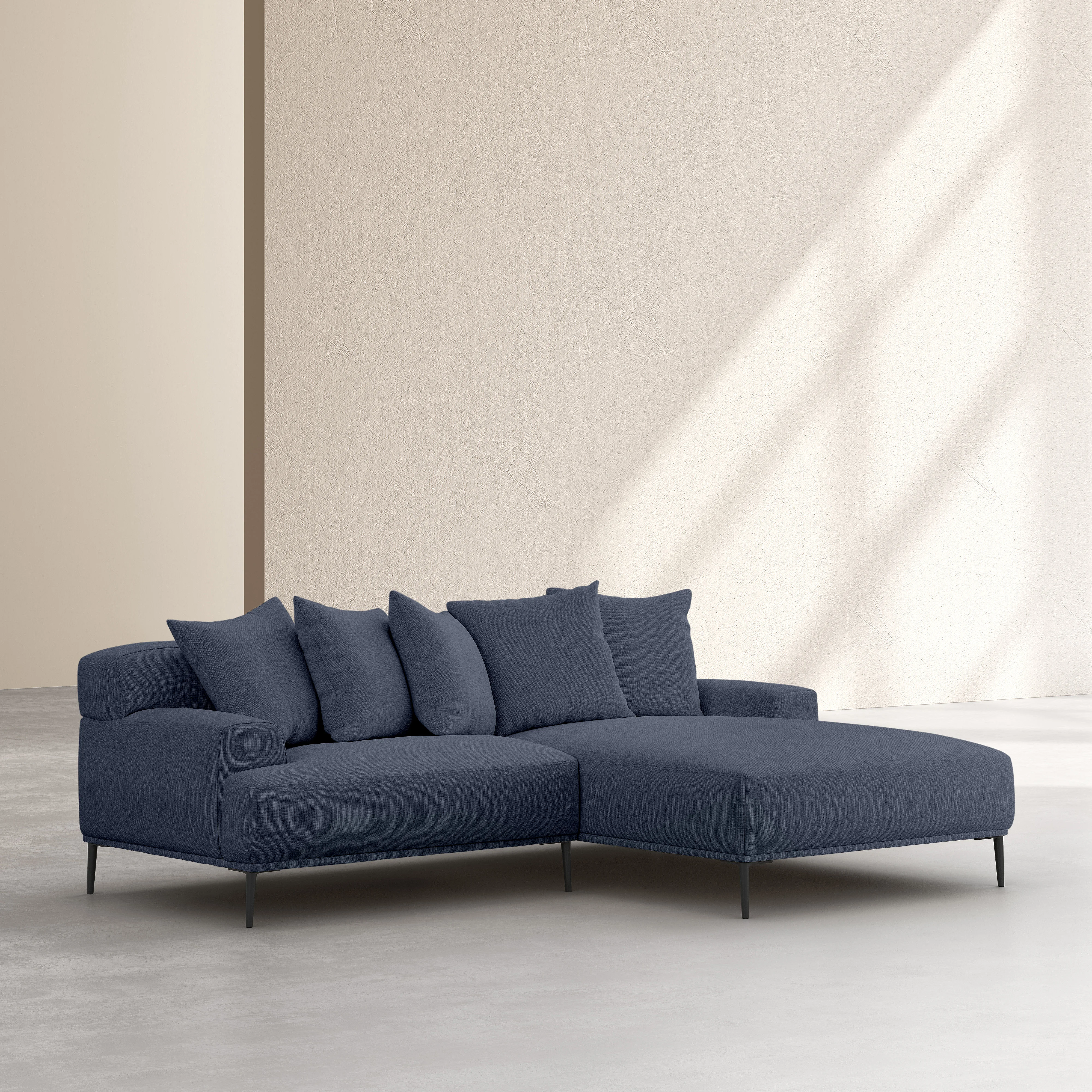 Canapé d'angle droit en coton et lin garni de plumes - Bleu