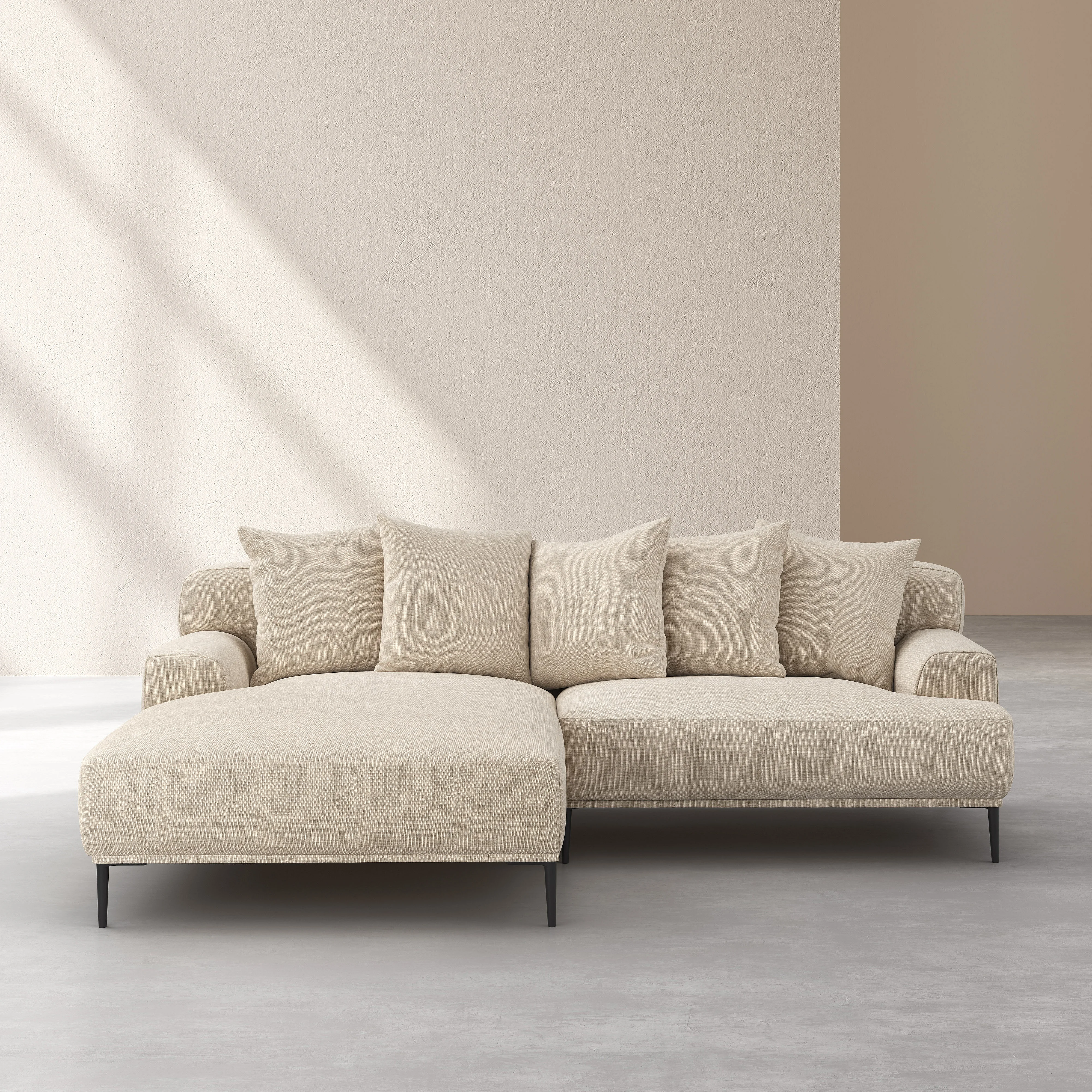 Canapé d'angle gauche en coton et lin garni de plumes - Beige