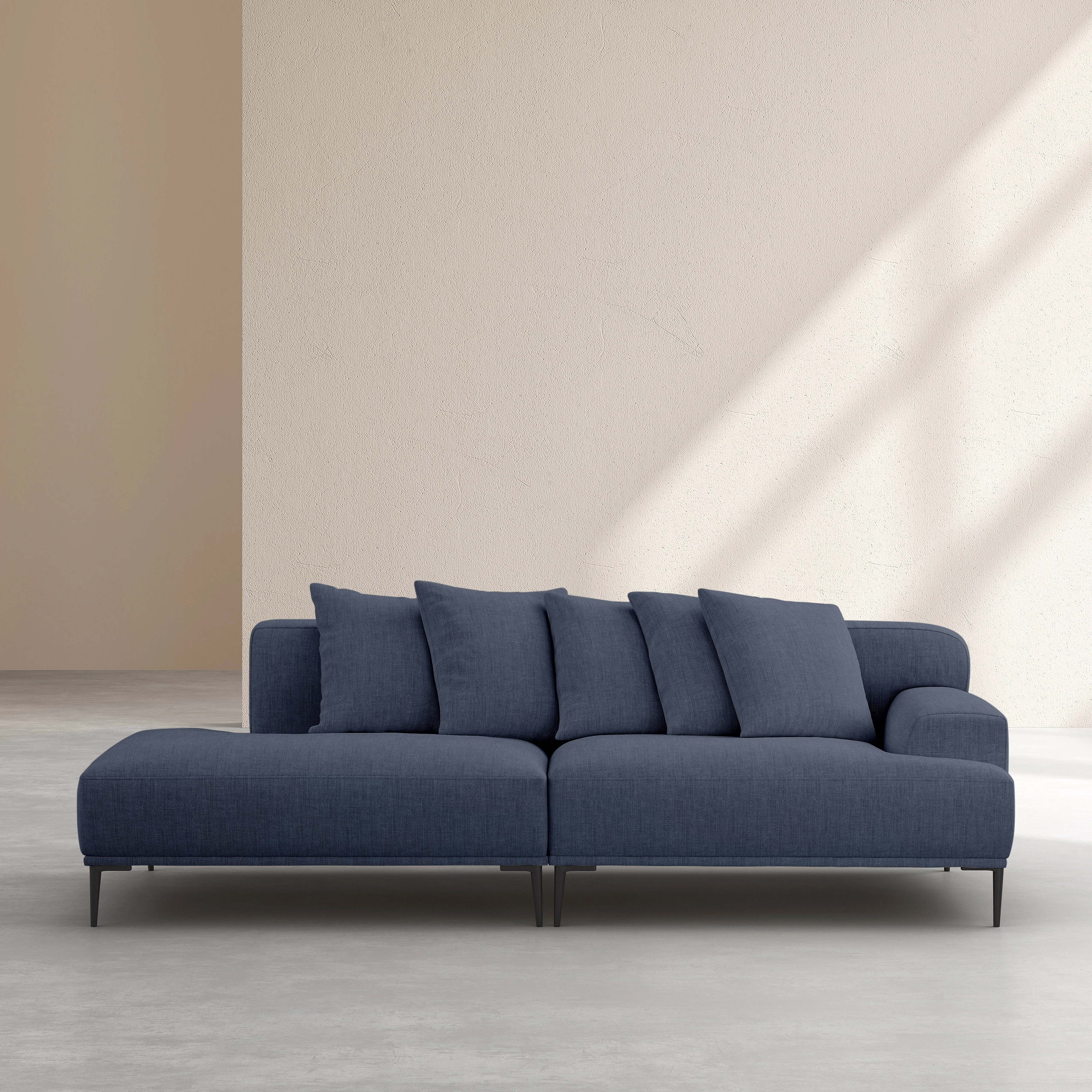 Méridienne droite en coton et lin garnie de plumes - Bleu