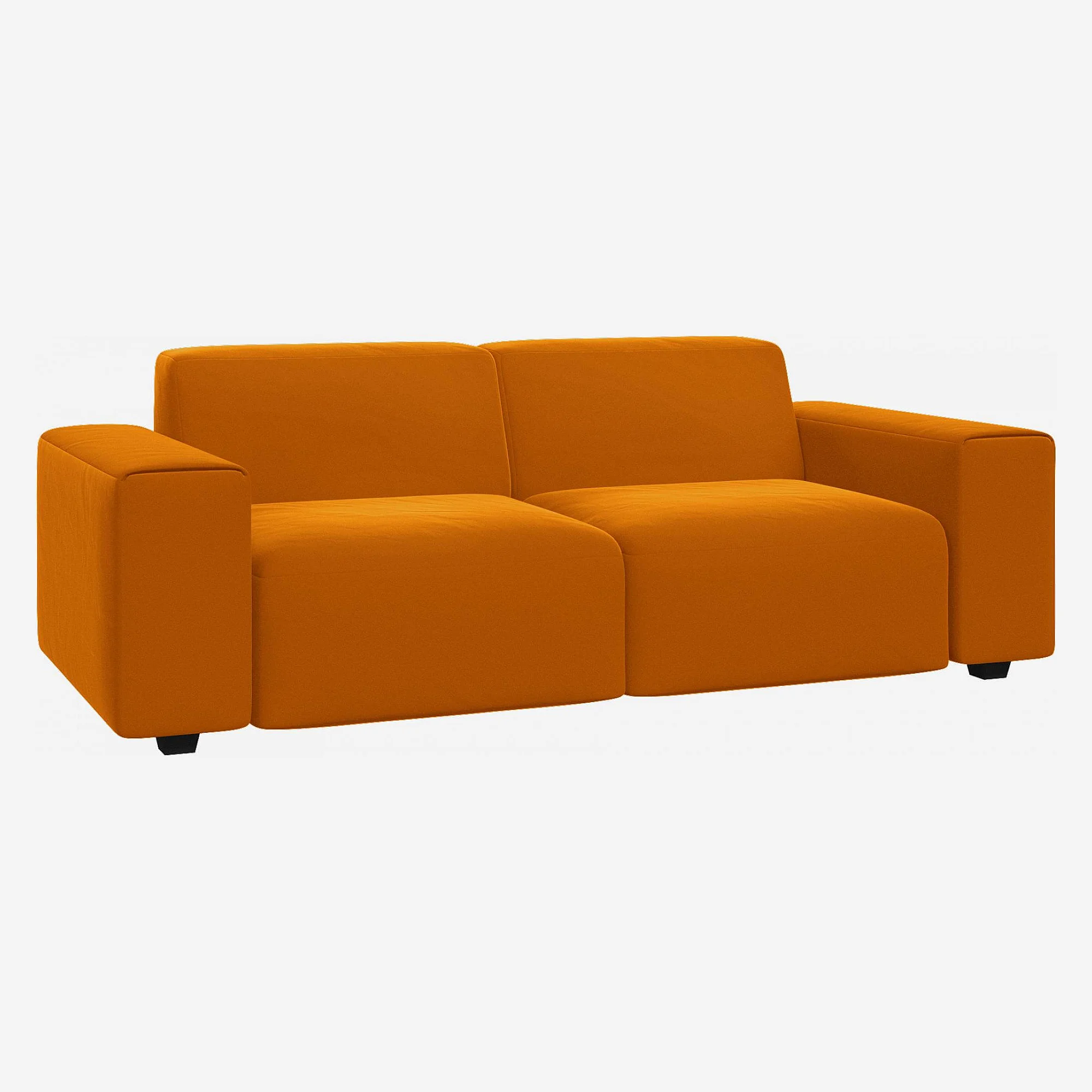 Velours profond, finitions soignées et formes généreuses caractérisent ce canapé 2 places au confort moelleux. Une pièce élégante et accueillante, idéale pour composer un salon au style moderne.