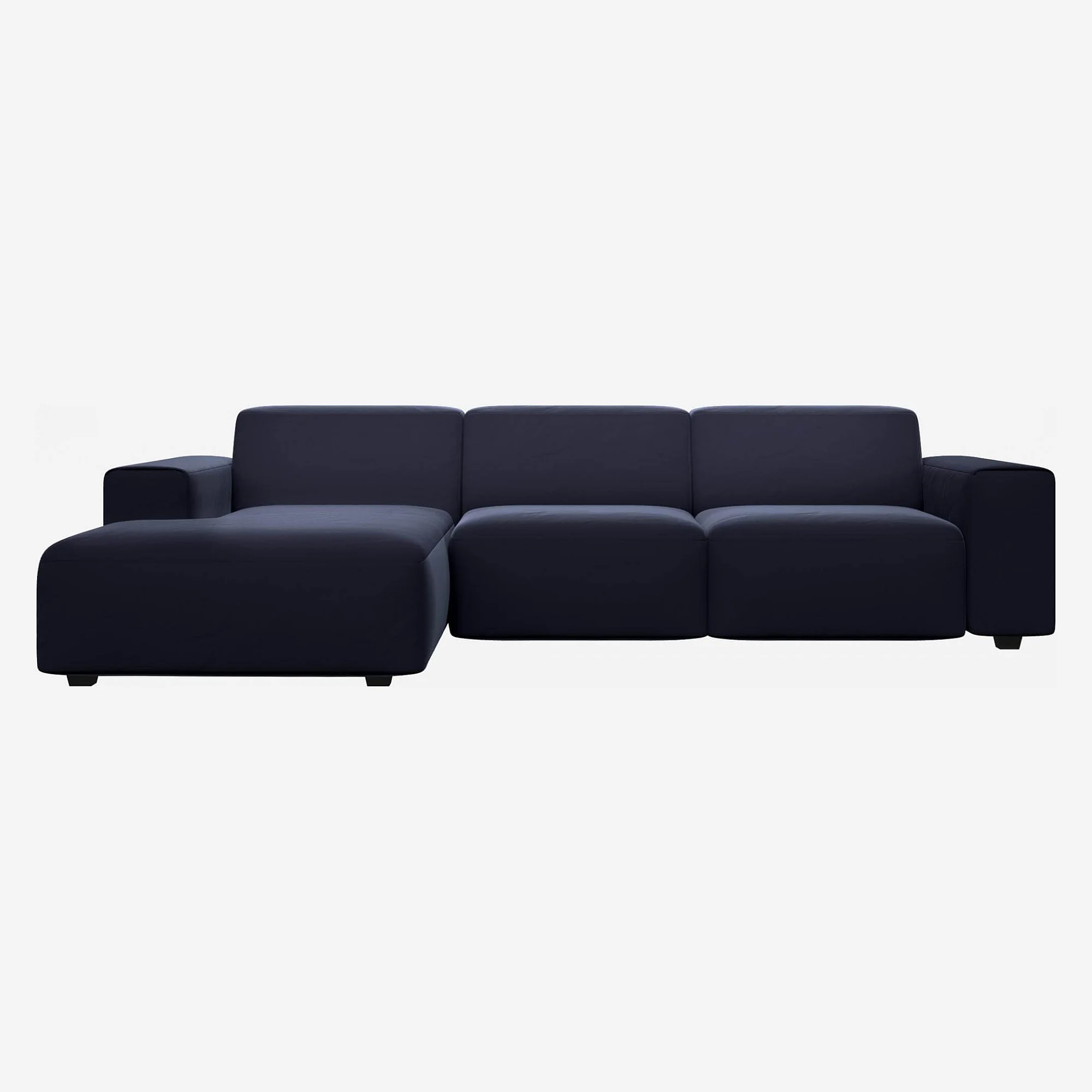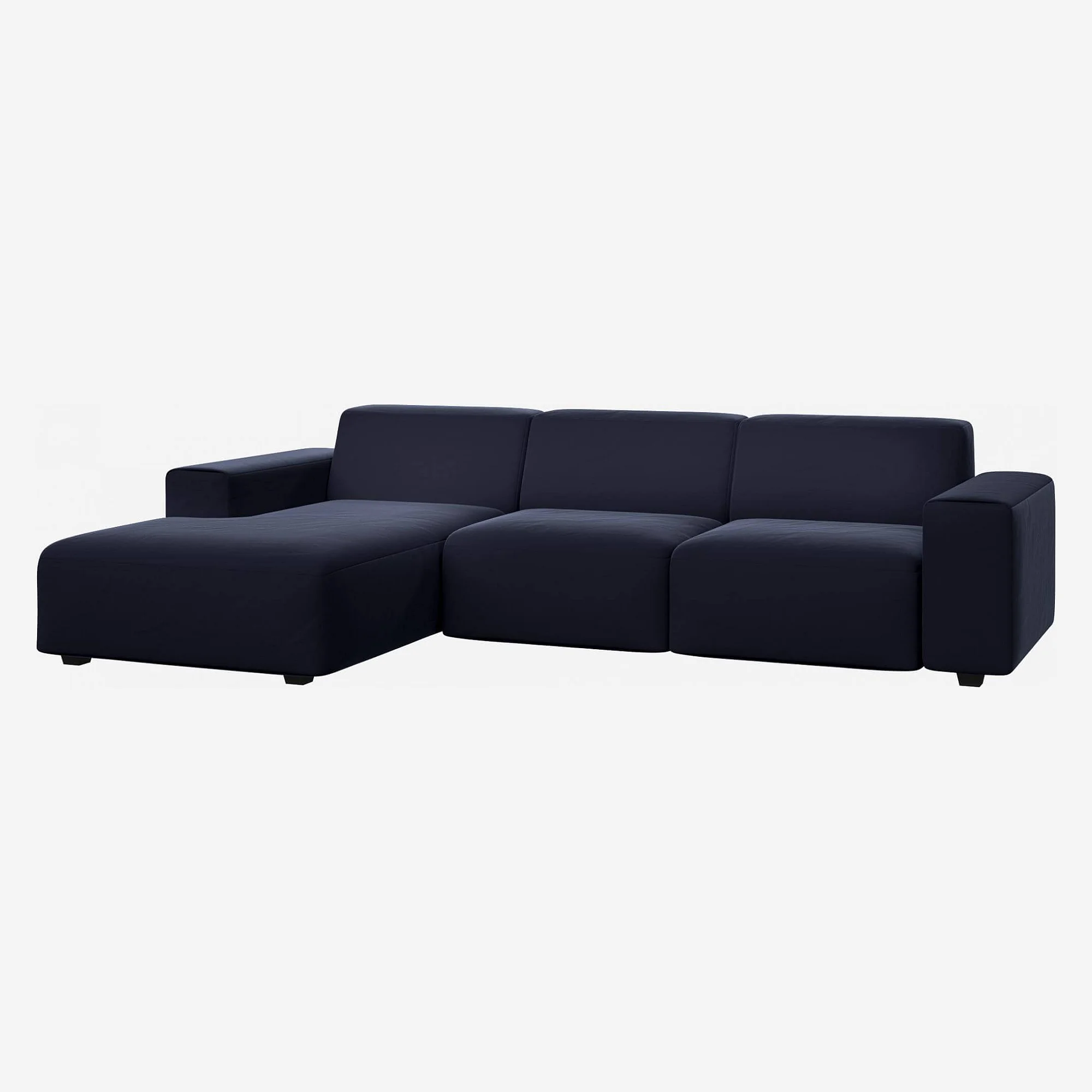Velours profond et coutures discrètes définissent ce canapé d'angle aux lignes généreuses. Il est complété par une assise enveloppante, idéale pour composer un salon chaleureux et sophistiqué.