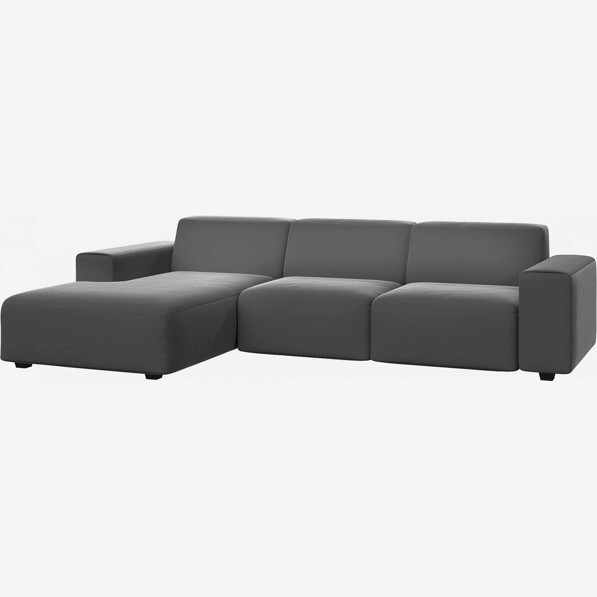Canapé 3 places avec méridienne gauche en velours - Gris ardoise
