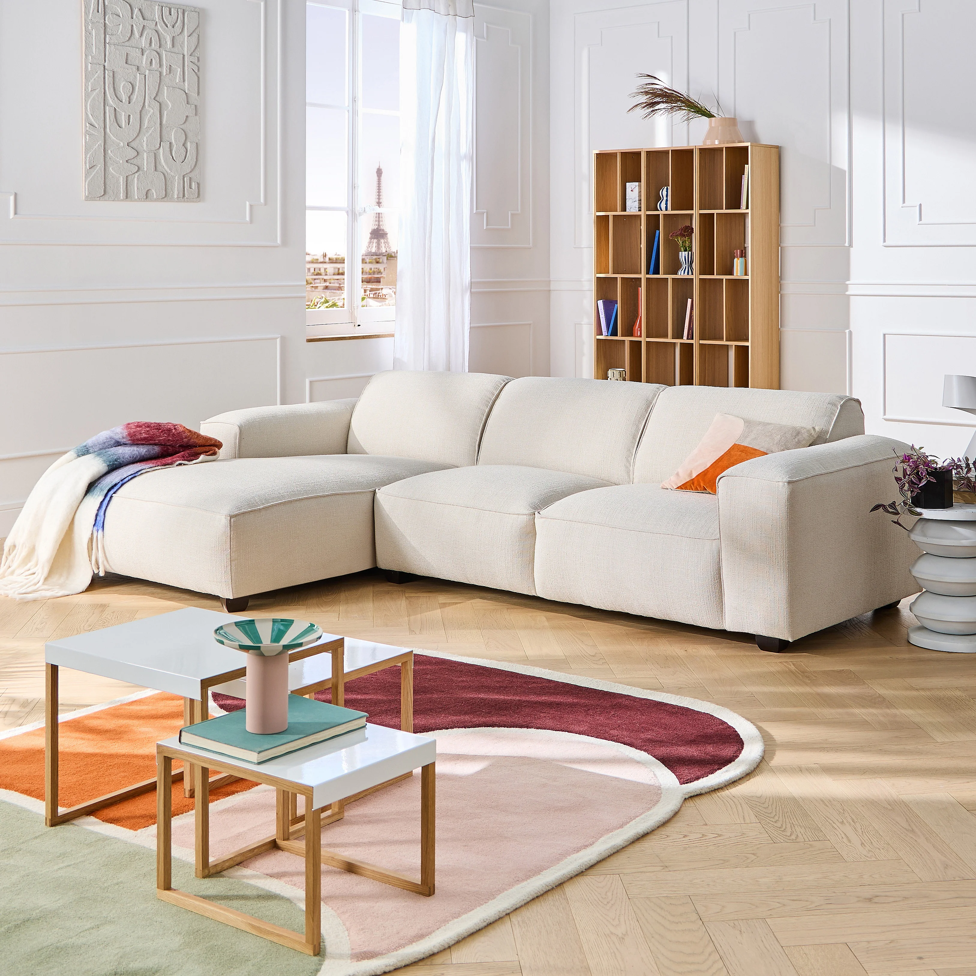 Canapé d'angle gauche en tissu chenille Nino - Grège