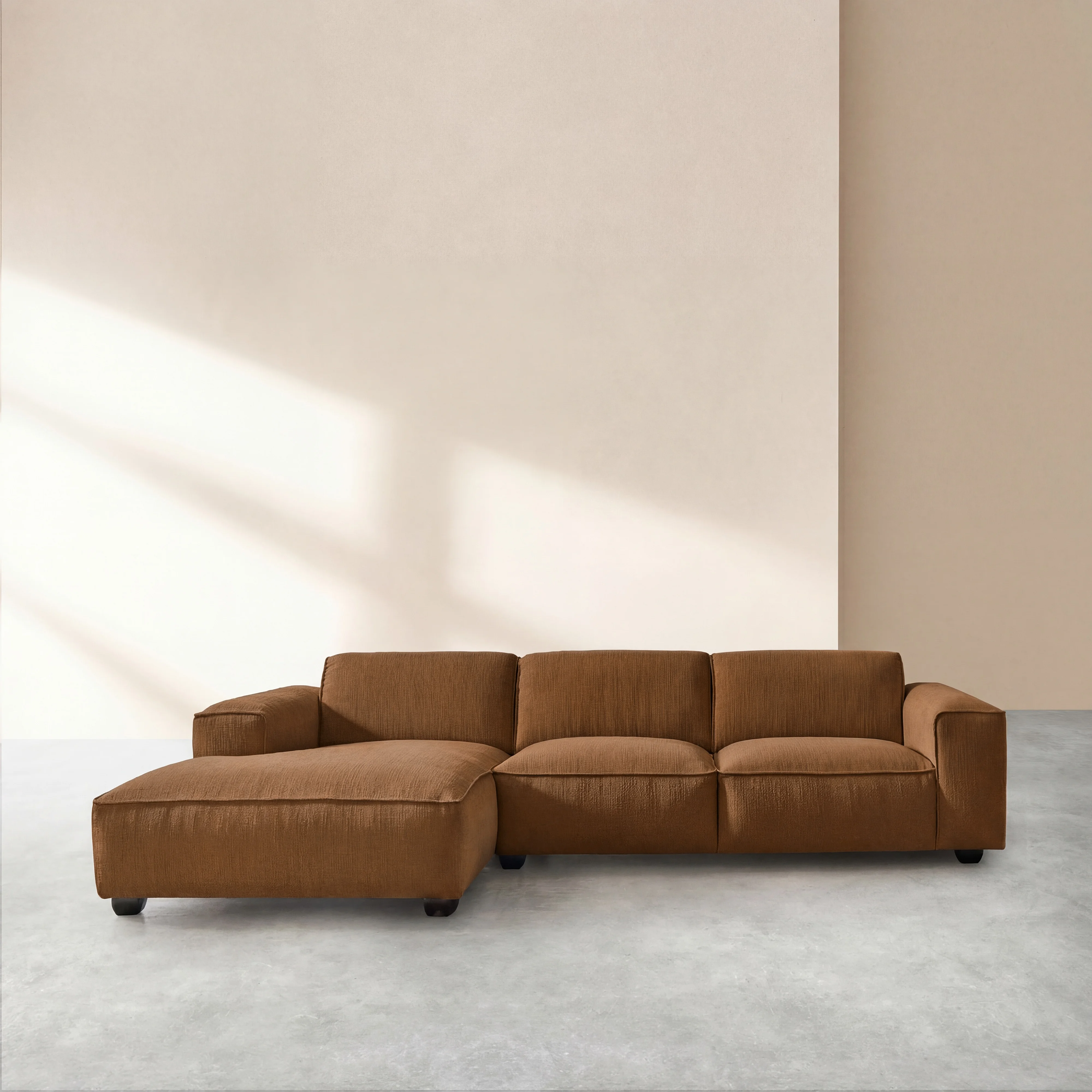 Canapé d'angle gauche en tissu bouclette courte Mira - Marron noisette