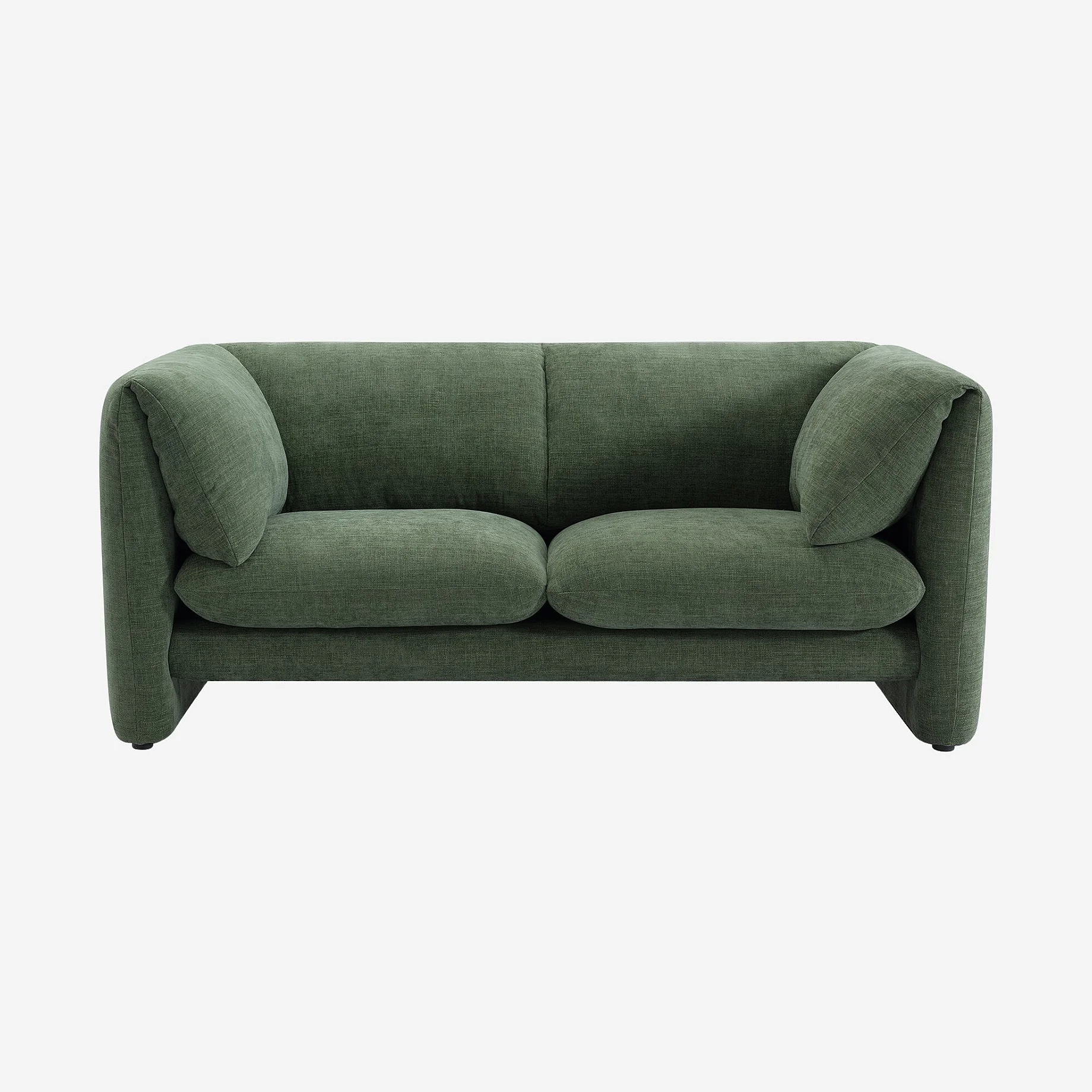 Avec ses courbes douces et son design épuré, ce canapé conjugue confort enveloppant et équilibre visuel. Les accoudoirs intégrés en soulignent la silhouette singulière.