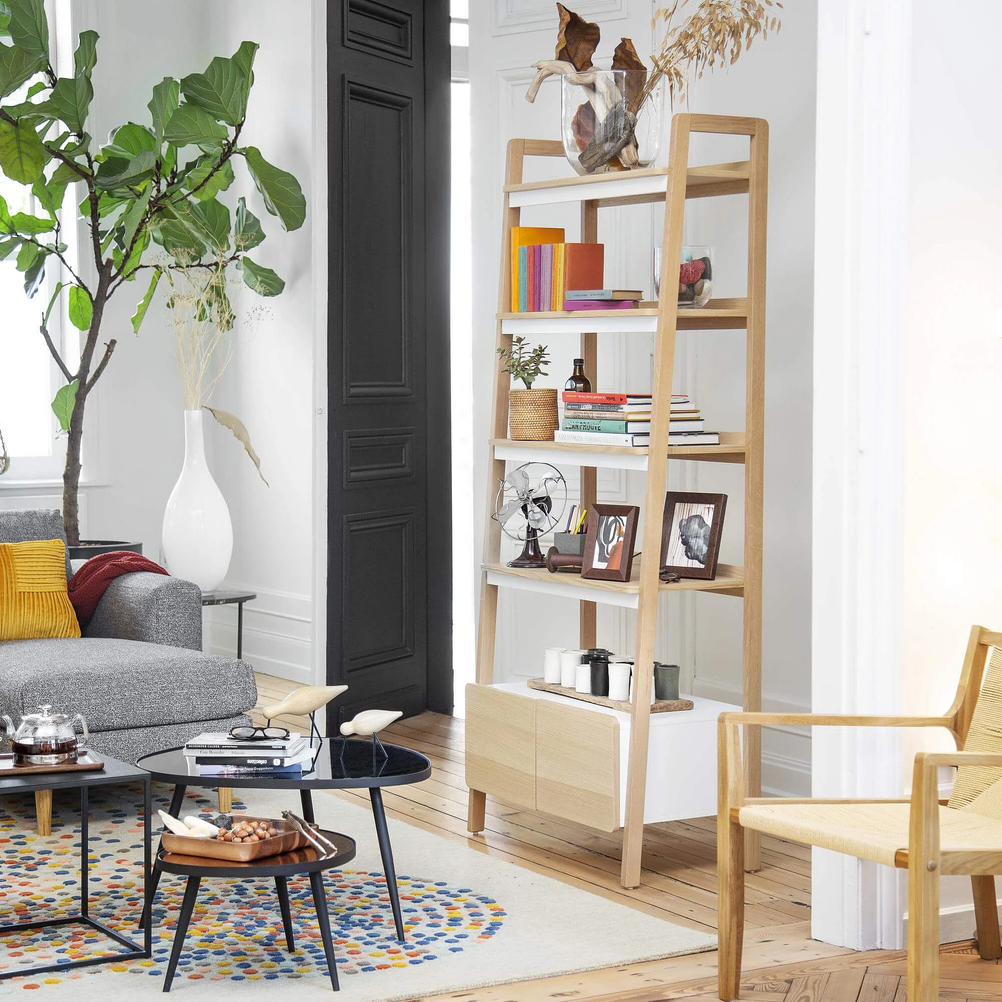 L’étagère Sébastien en chêne, signée Adrien Carvès, allie design en échelle et rangements pratiques pour créer un espace de travail fonctionnel et élégant.