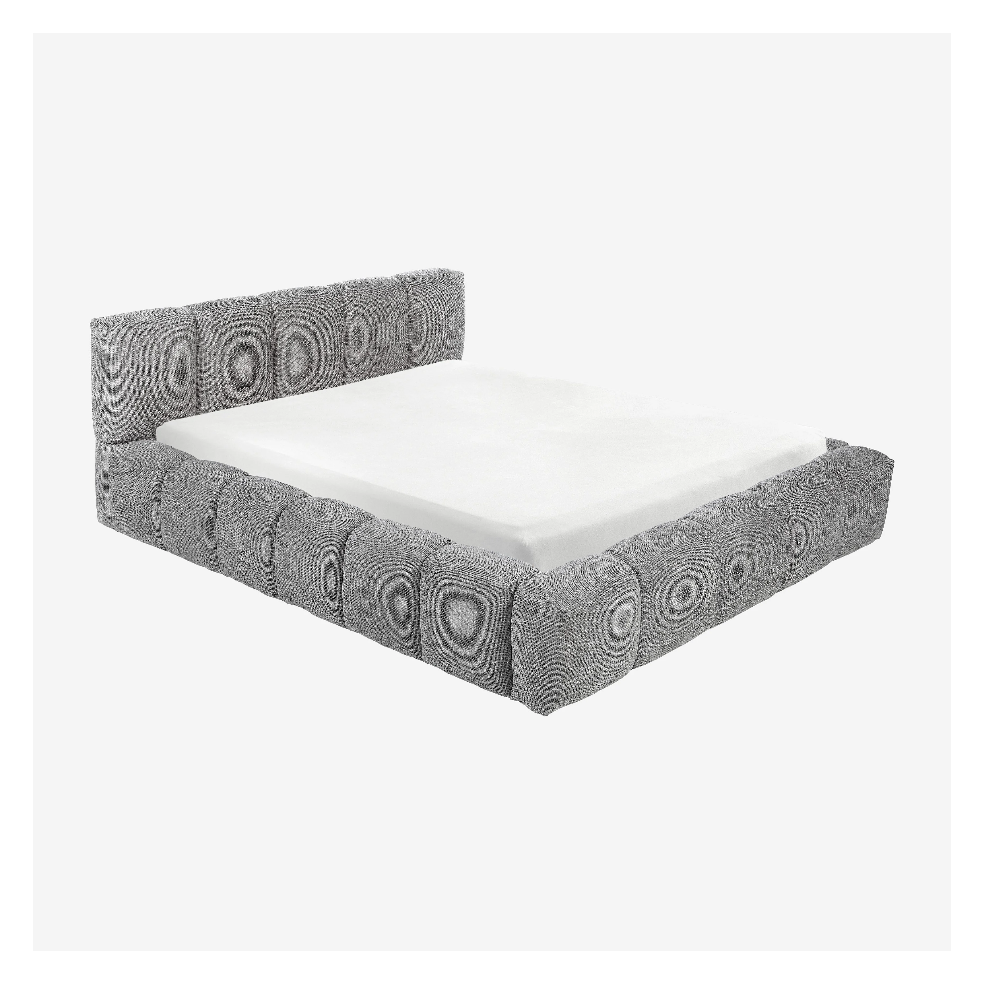 Lit coffre 160 x 200 cm en tissu chenille - Gris galet