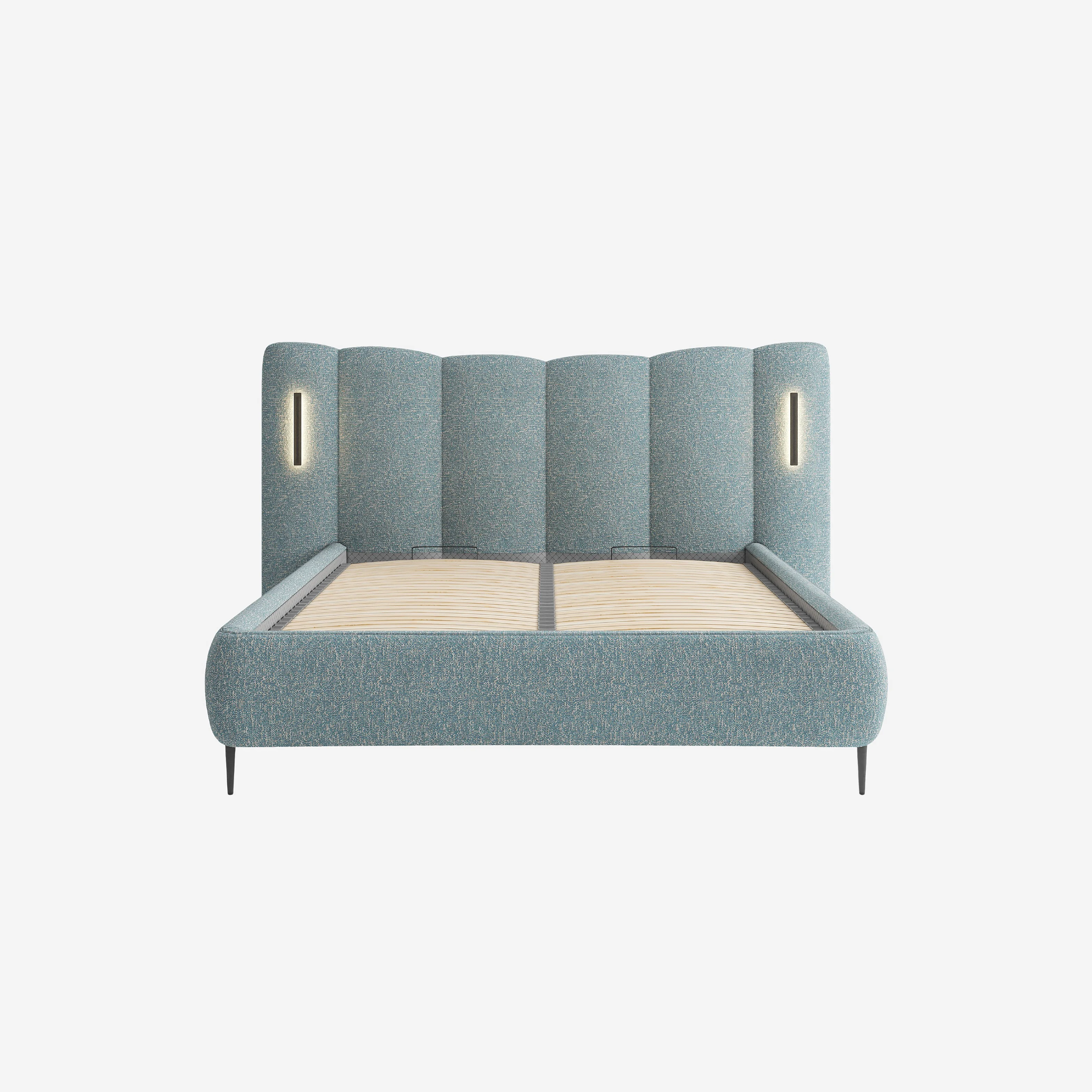Ce lit allie élégance contemporaine et fonctionnalité avec son coffre offrant un espace de rangement. Siderno séduit par sa tête de lit sculpturale soulignée de LED et son matelassage généreux.