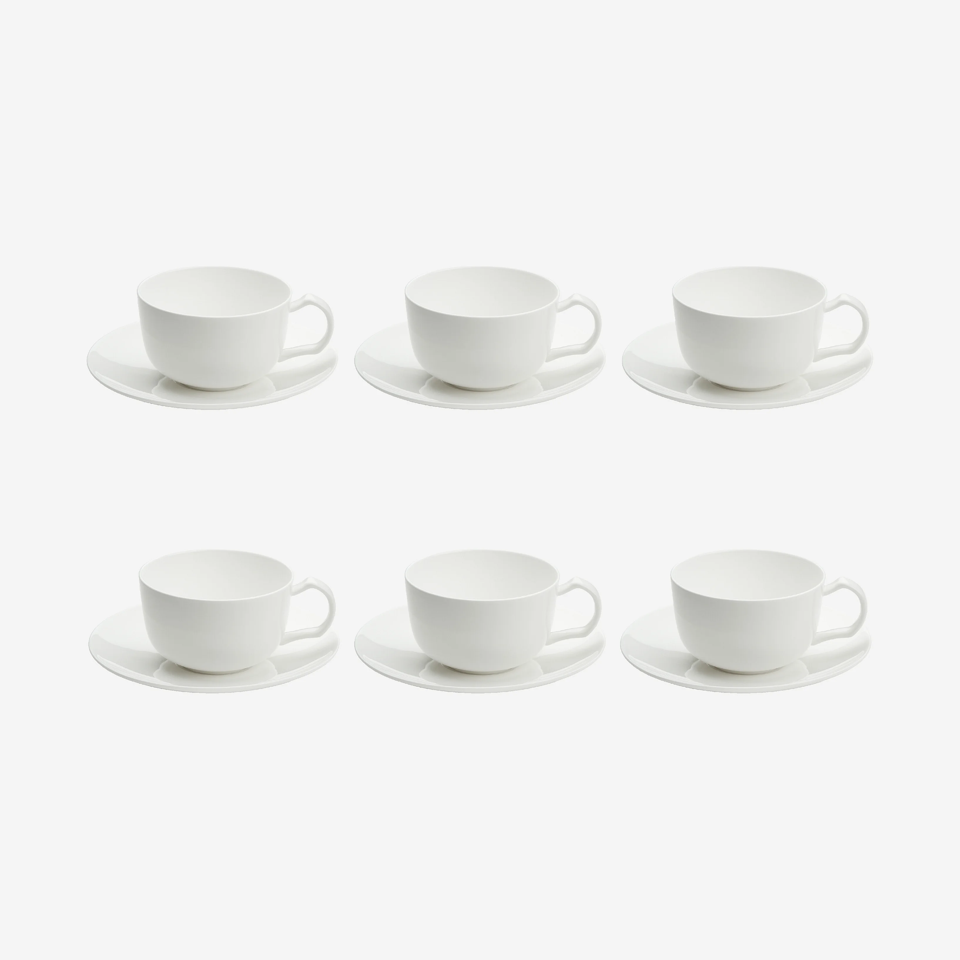 Lot de 6 tasses avec soucoupes en porcelaine - 23 cl - Blanc