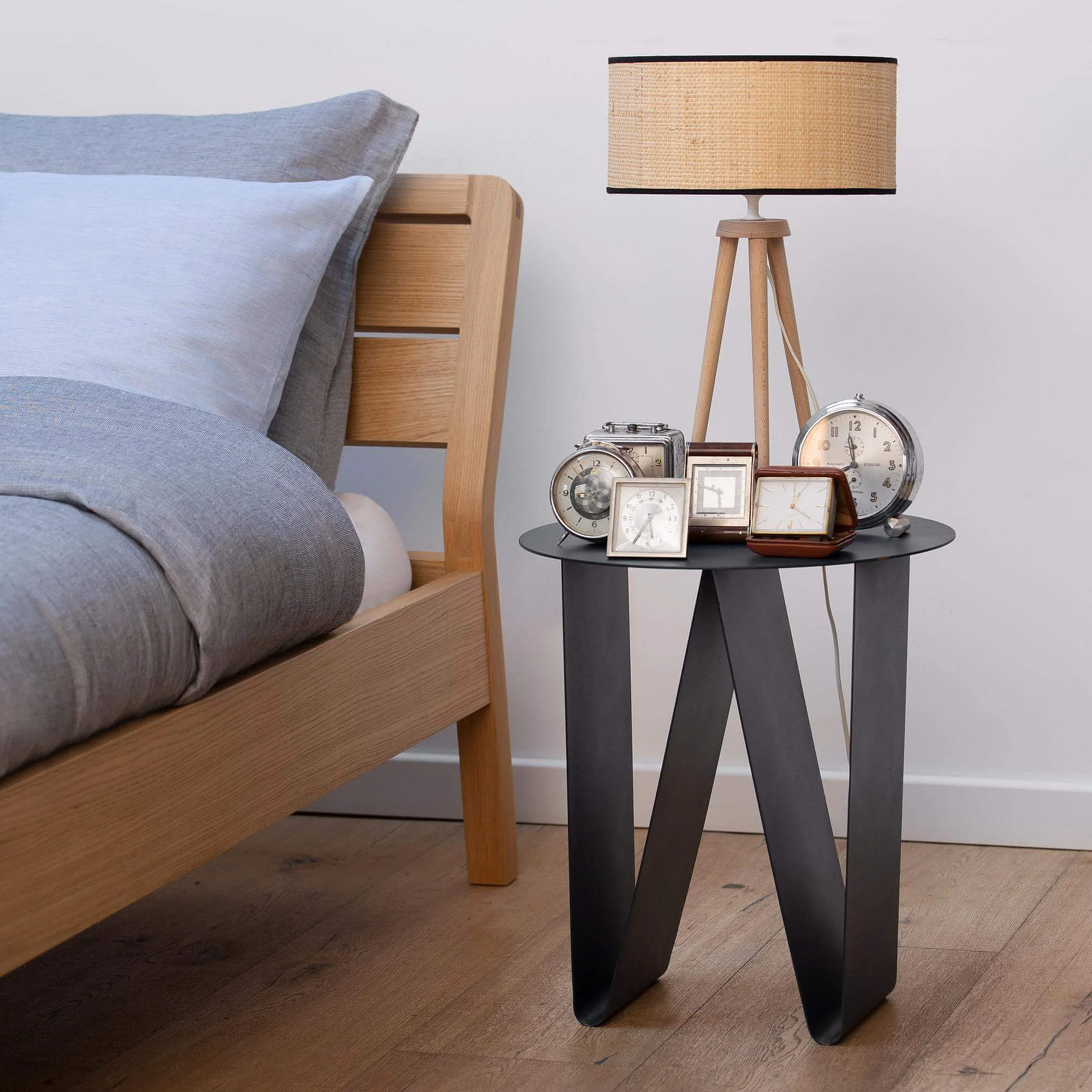 Tal révèle l’élégance artisanale avec son métal plié bleu nuit, une table d’appoint aussi pratique que sculpturale.