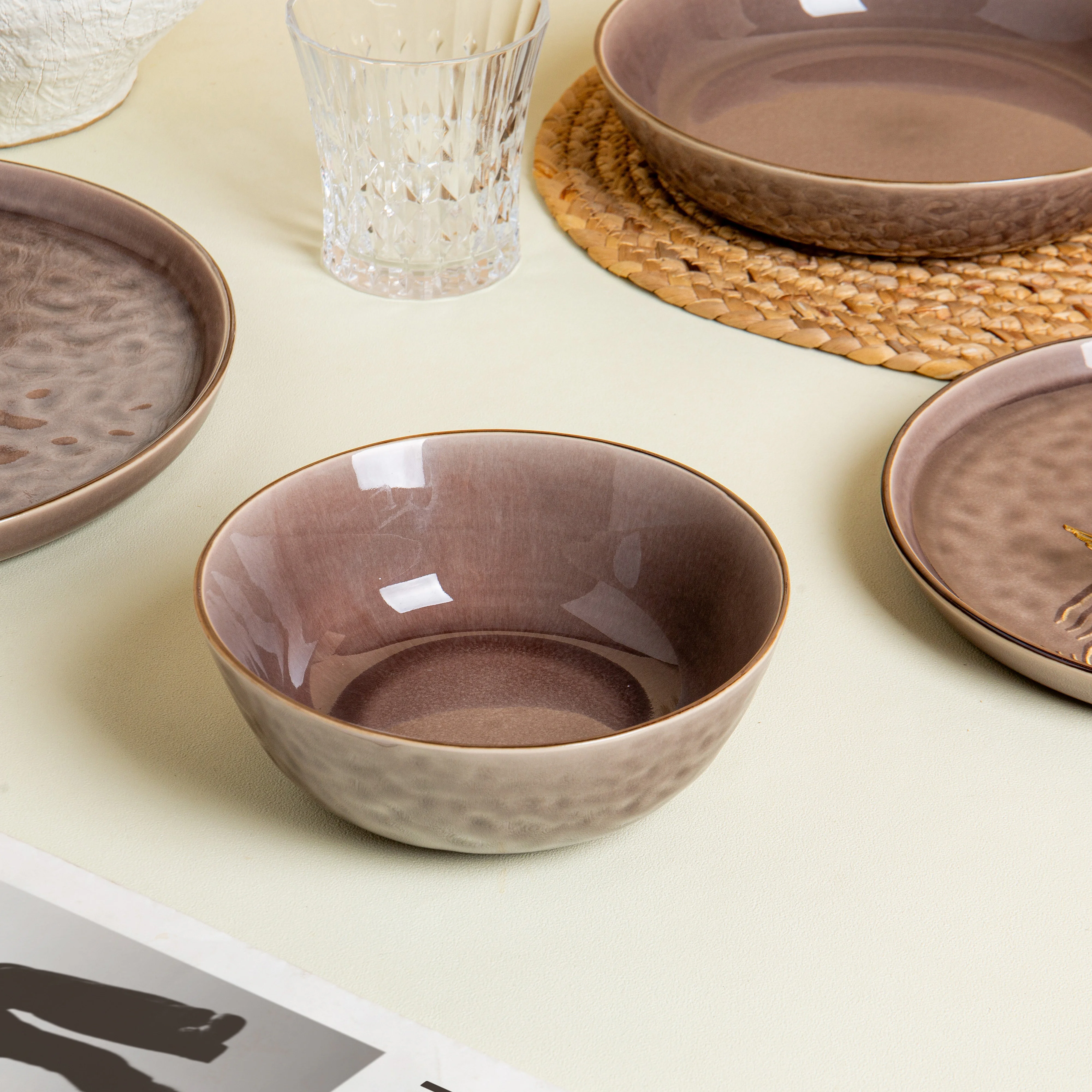 Lot de 6 bols en grès à émail réactif - Marron glacé