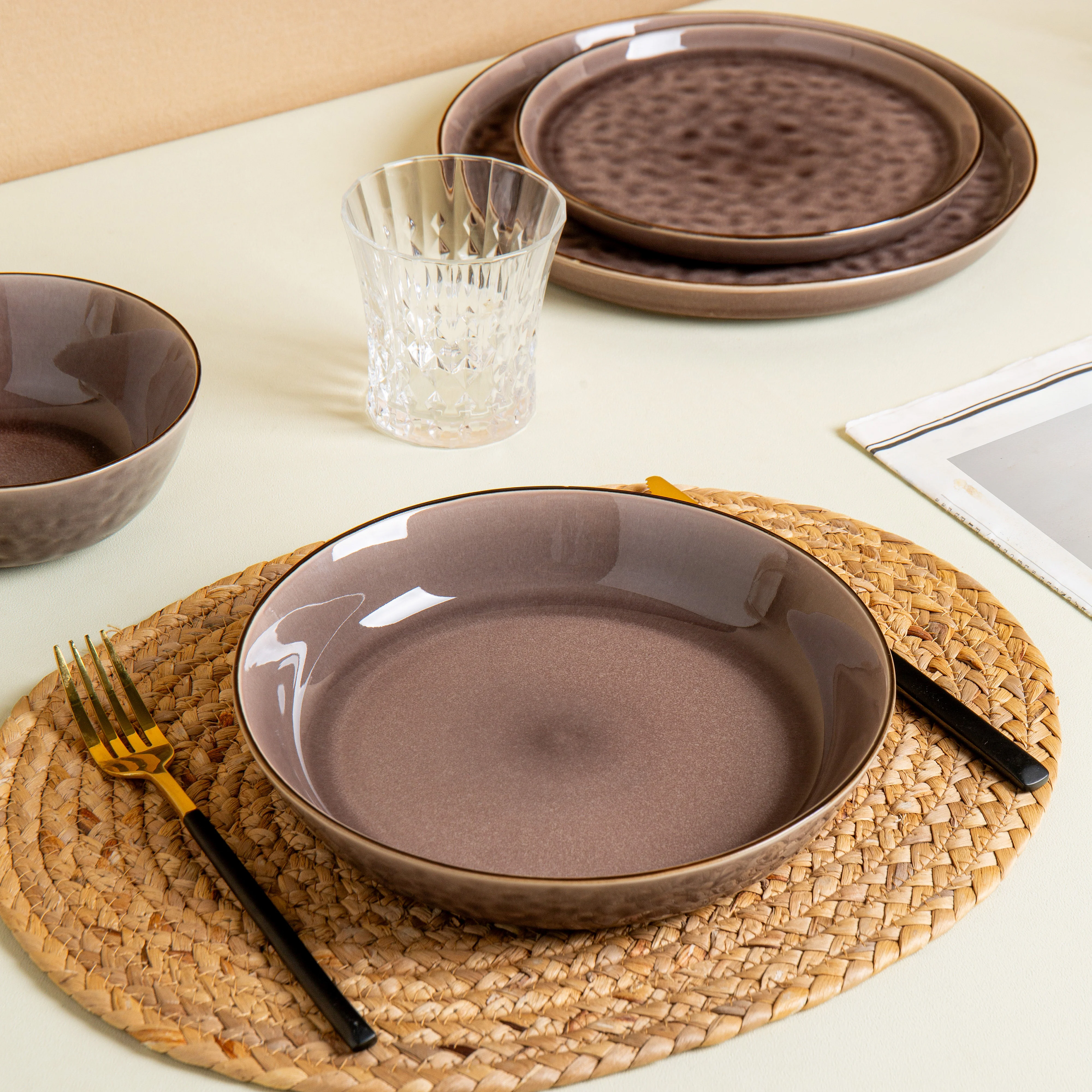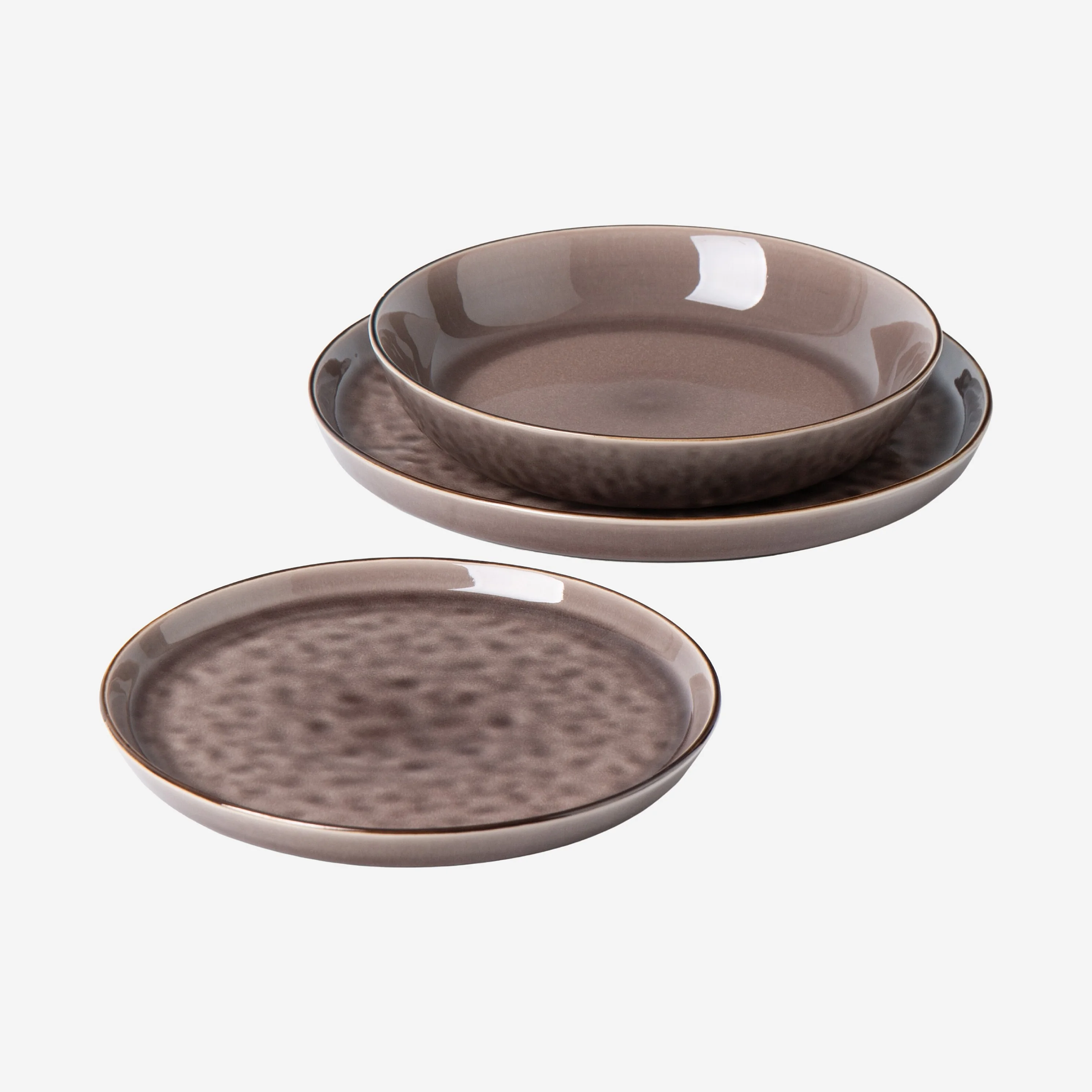 Service de table 18 pièces en grès à émail réactif - Marron glacé